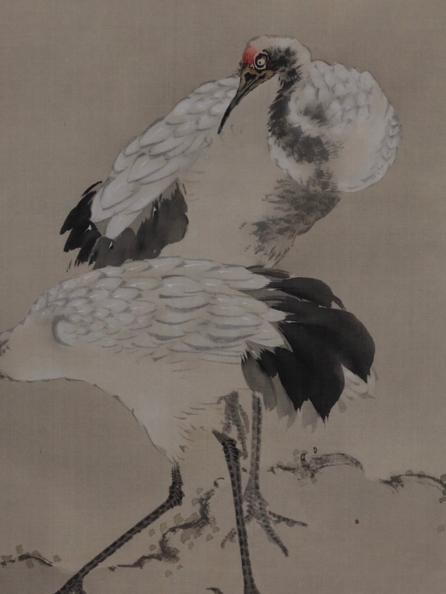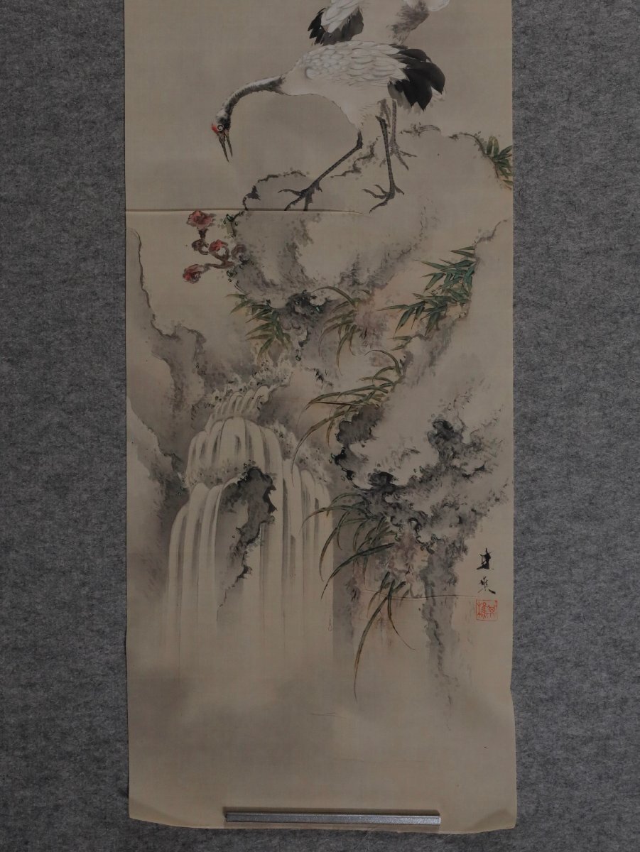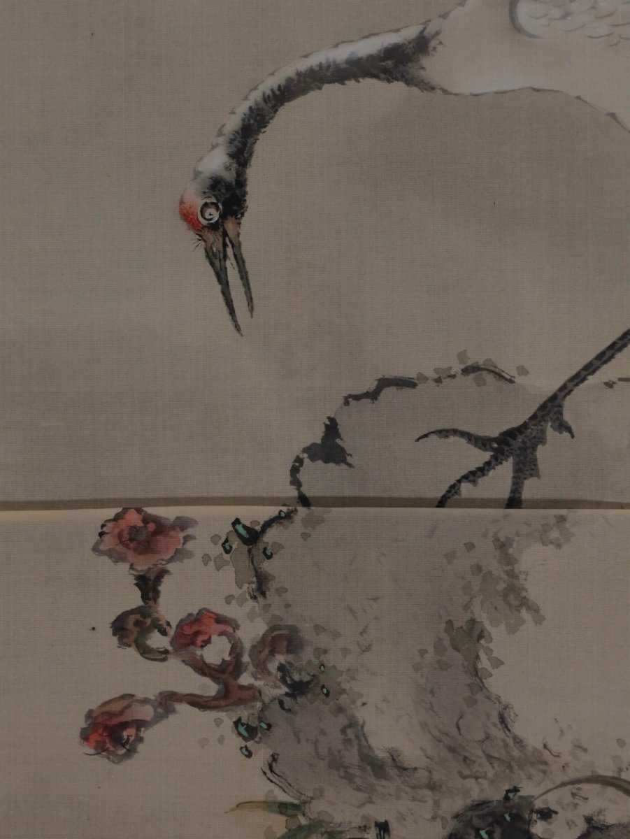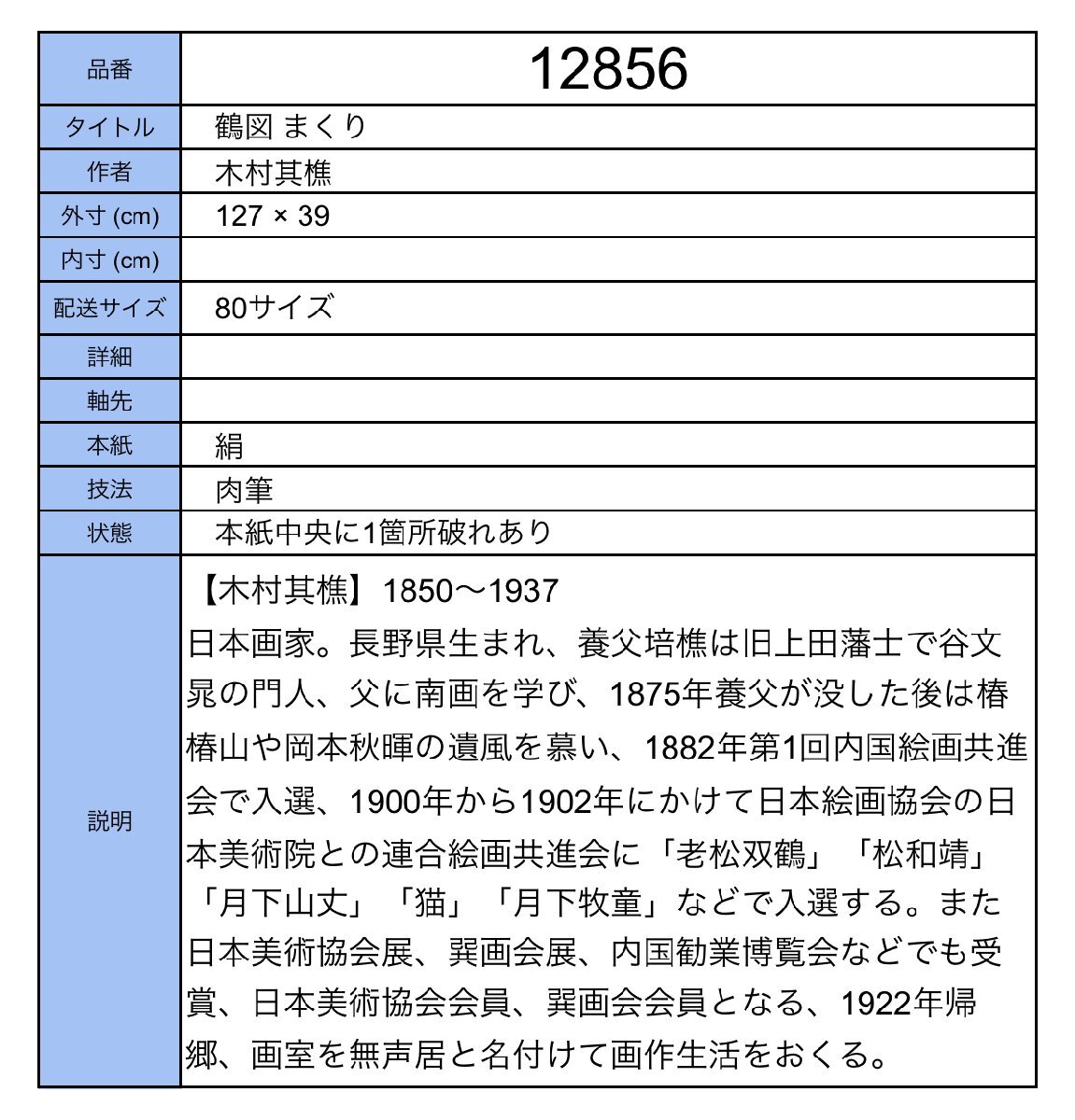 【模写】吉】12856 木村其樵 鶴図 まくり 長野県の人 上田藩士 木村培樵の子 中国画 茶掛け 茶道具 掛軸 掛け軸 骨董品