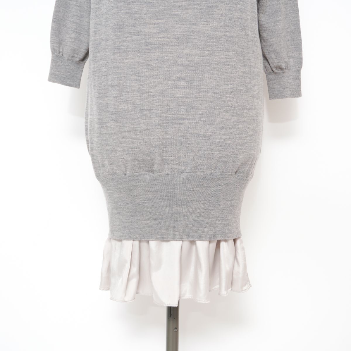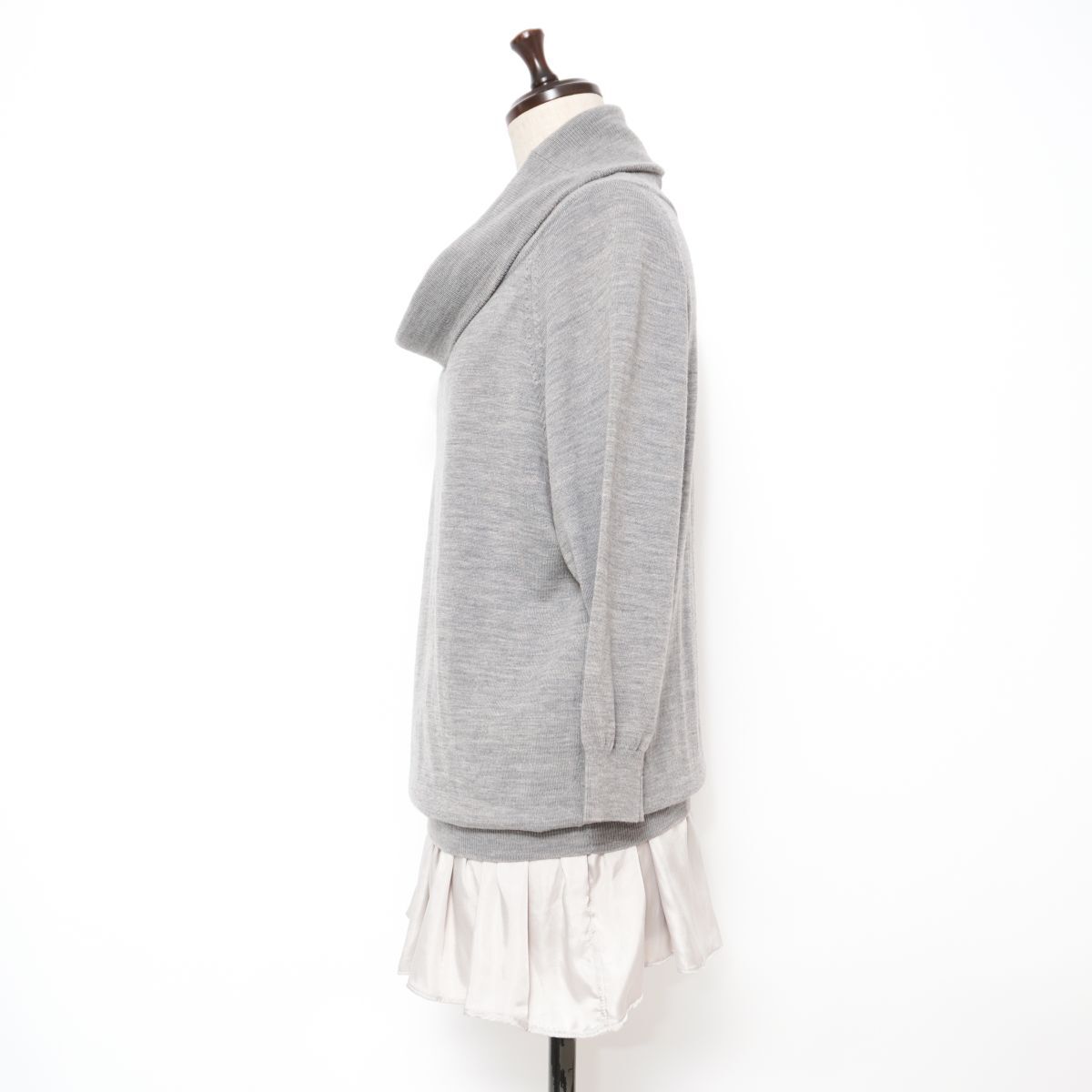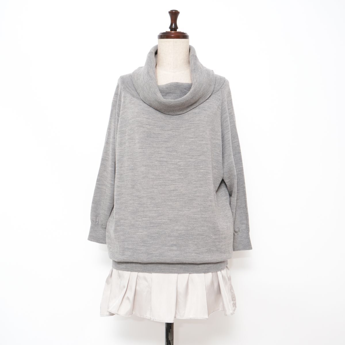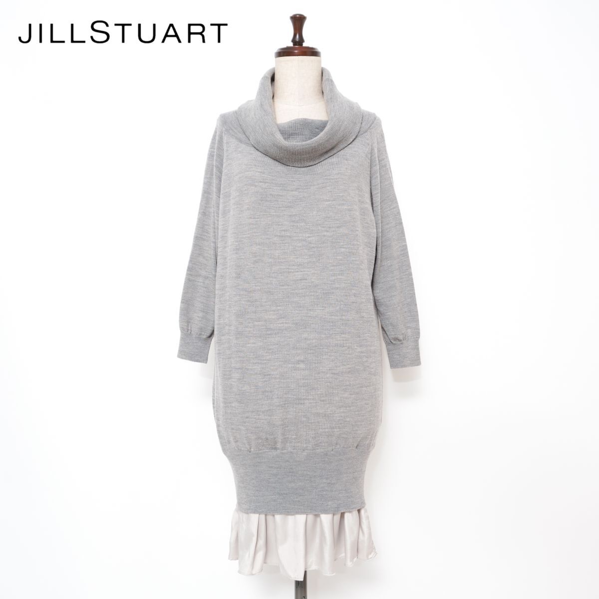 JILL STUART ジルスチュアート ローランニットワンピース タートルネック 2way フリル 七分袖 膝丈 グレー サイズ2*GD448