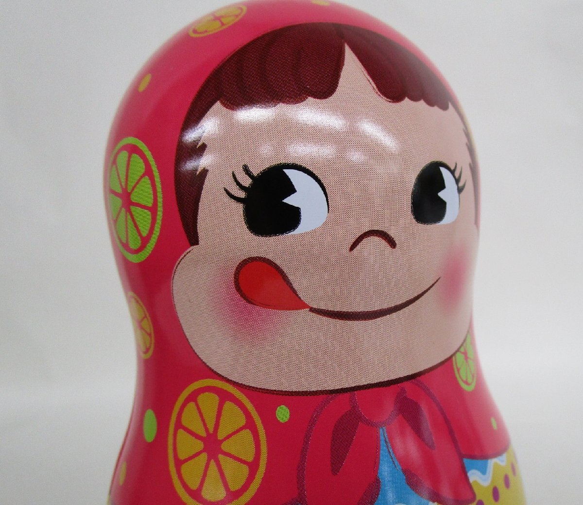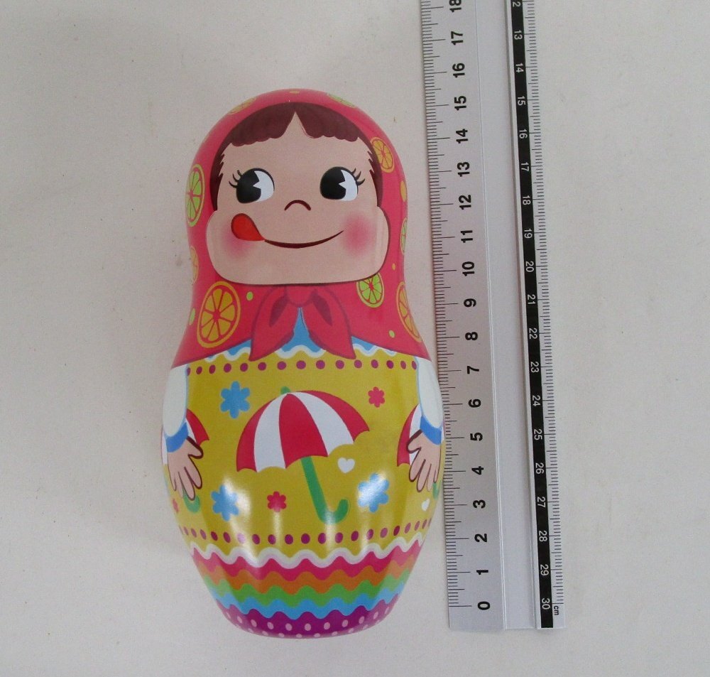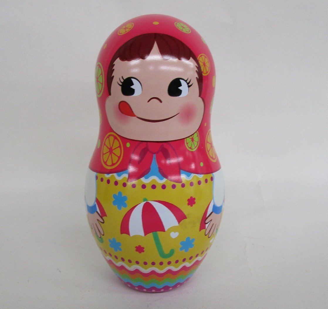 不二家 スーベニールおやつ ペコちゃん 初夏のマトリョーシカ人形缶(パラソル)【ジャンク】ukt072905