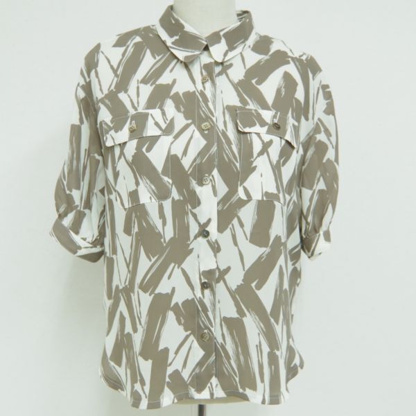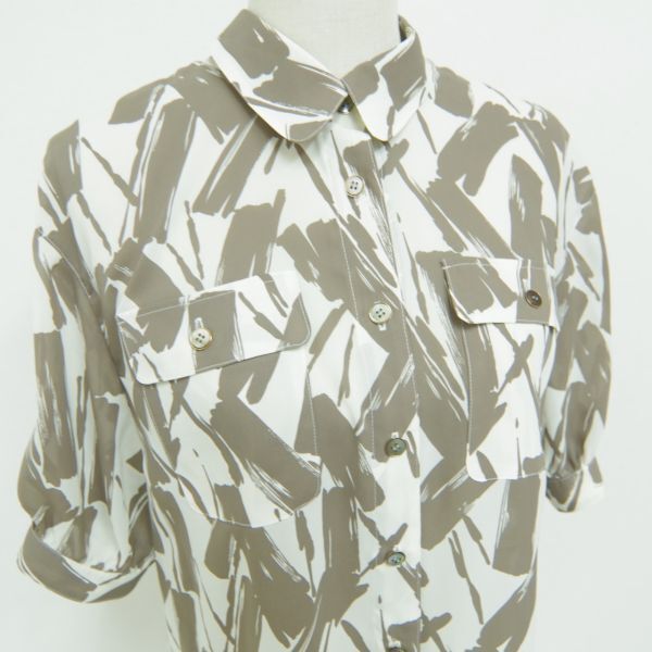 #01【即決】◇Leilian レリアン◇半袖ブラウス トップス 白×ブラウン サイズ9 #967446