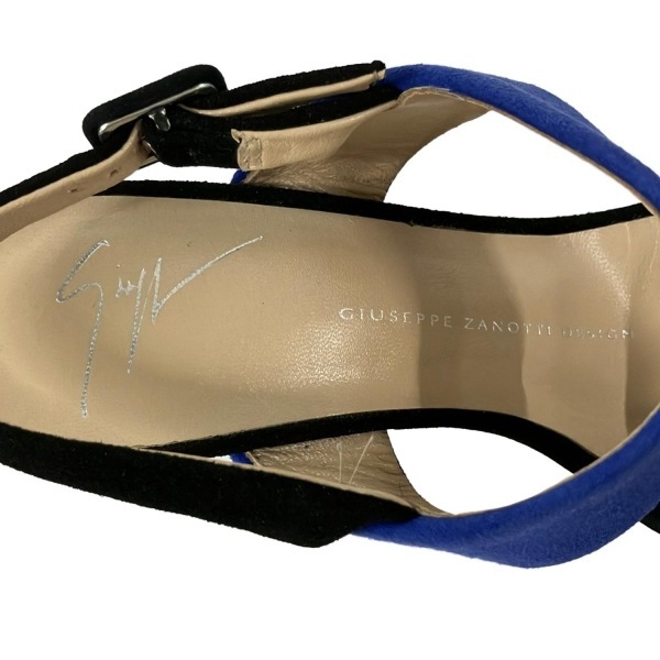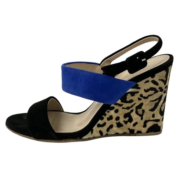 ジュゼッペザノッティ giuseppe zanotti サンダル 36 1/2 - 黒×ブルー×マルチ レディース ウェッジソール/豹柄 靴