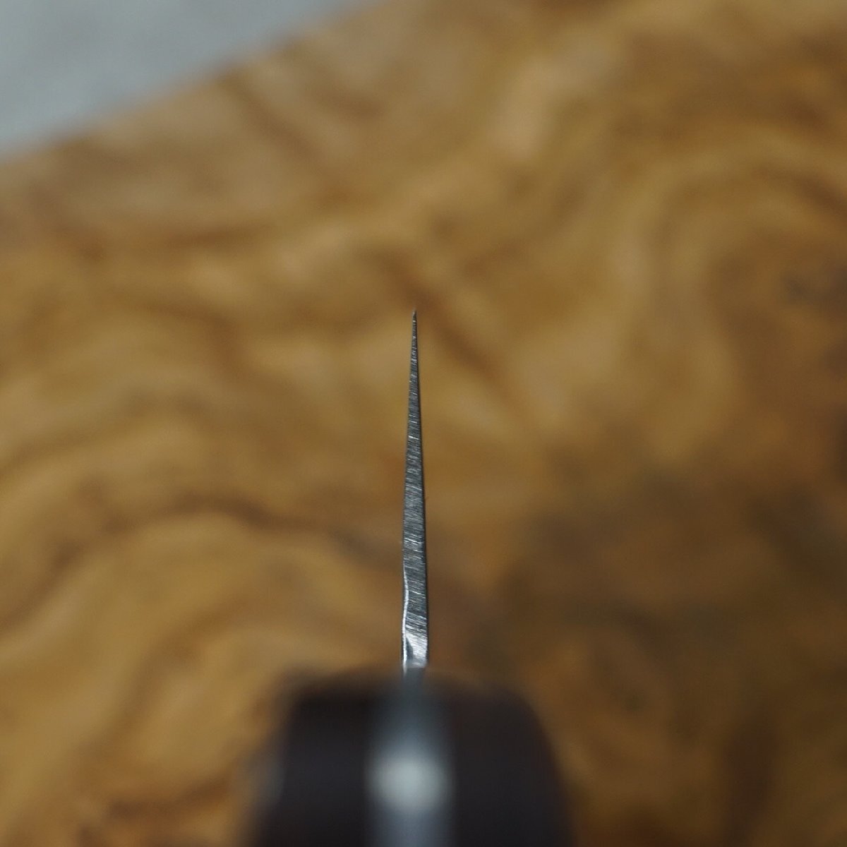 硬い刃は両側から柔らかいステンレスでサンドイッチされていて、固い刃の心材の面積が少ないため、非常に研ぎやすい構造となっています。硬い面積が多いとそれだけ研ぐのが大変ですよね。