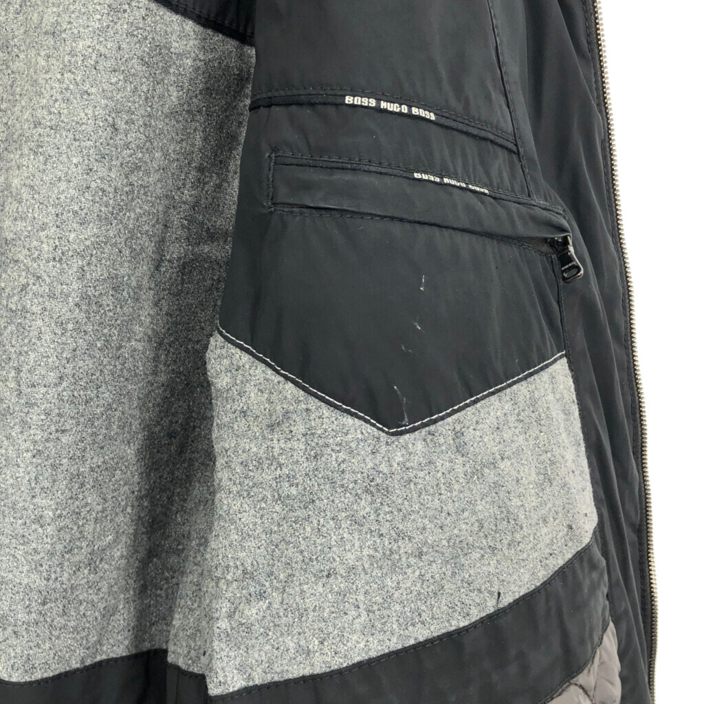 【商品管理番号】 R4161 【ブランド】 HUGO BOSS/ヒューゴボス 【サイズ】 44 R 【実寸サイズ】 肩幅:約51cm 着丈:約70cm 身幅:約60cm 袖丈:約65cm 【主な素材】 表地 : ポリエステル 裏地 : 13848 【色】 ブラック 【仕様】 【状態】 汚れ:首元、袖、袖先、胸裏地 キズ:肩、袖、袖先、胸、腹部、背中、腰 破れ:ポケット内 特記事項:使用感あり、色褪せ |