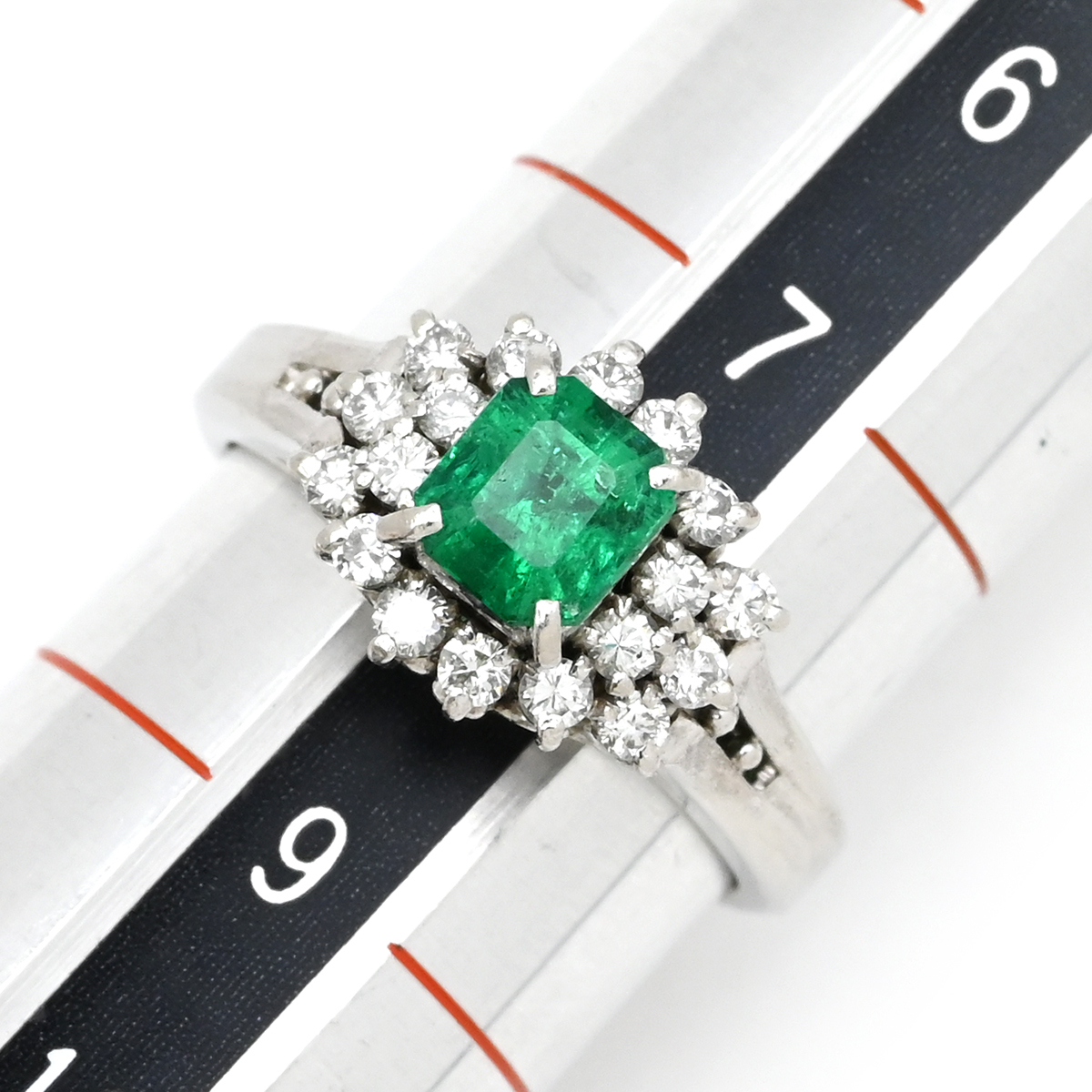 ノンブランド NON BRAND リング 指輪 Pt900 エメラルド ダイヤモンド プラチナシルバーグリーン 緑 - 8号 レディース定番 人気 美品 中古 | |