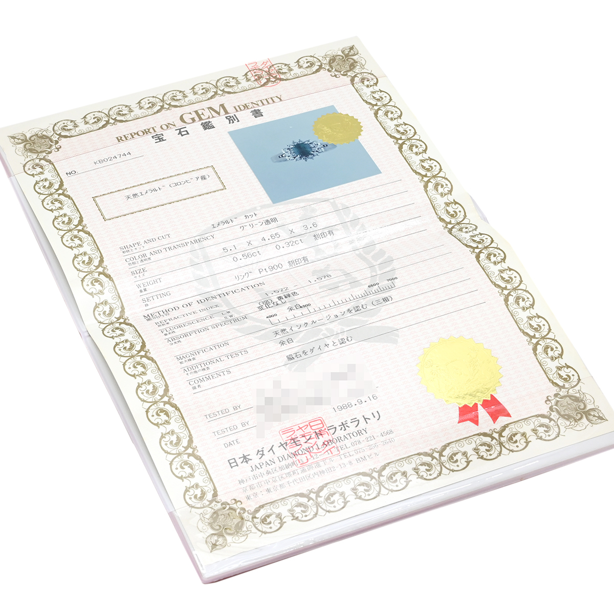 石目 | エメラルド ダイヤモンド 0.56 0.32 の刻印有り | |