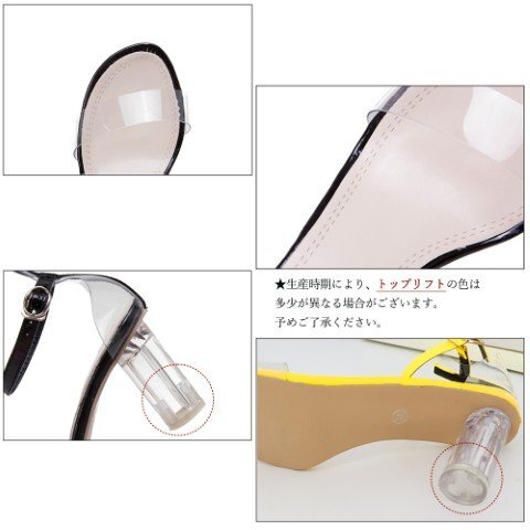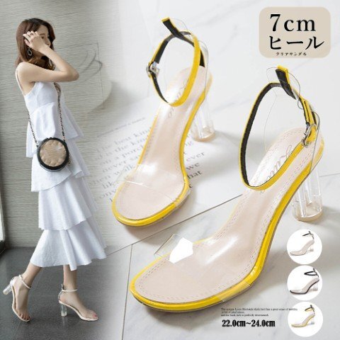 クリアのプレートヒールが夏の日差しに煌めくキレイめクリアヒールサンダル