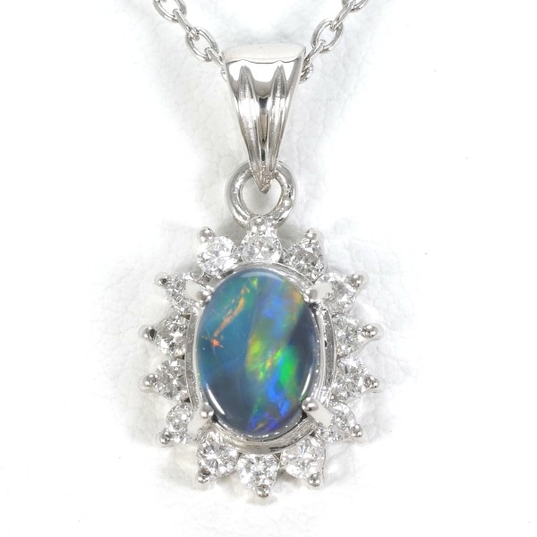 PT900 PT850 ネックレス ブラックオパール 0.67 ダイヤ 0.24 総重量約3.9g 約40cm 中古 美品 送料無料 | |
