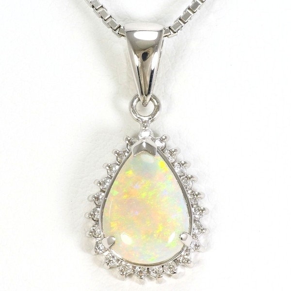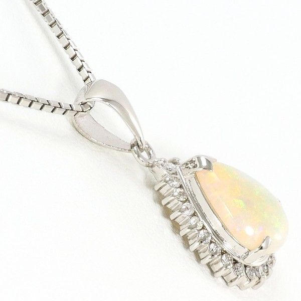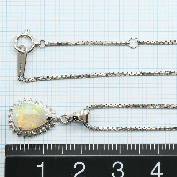 PT900 PT850 ネックレス オパール 1.06 ダイヤ 0.15 総重量約6.1g 約40cm 中古 美品 送料無料 | |