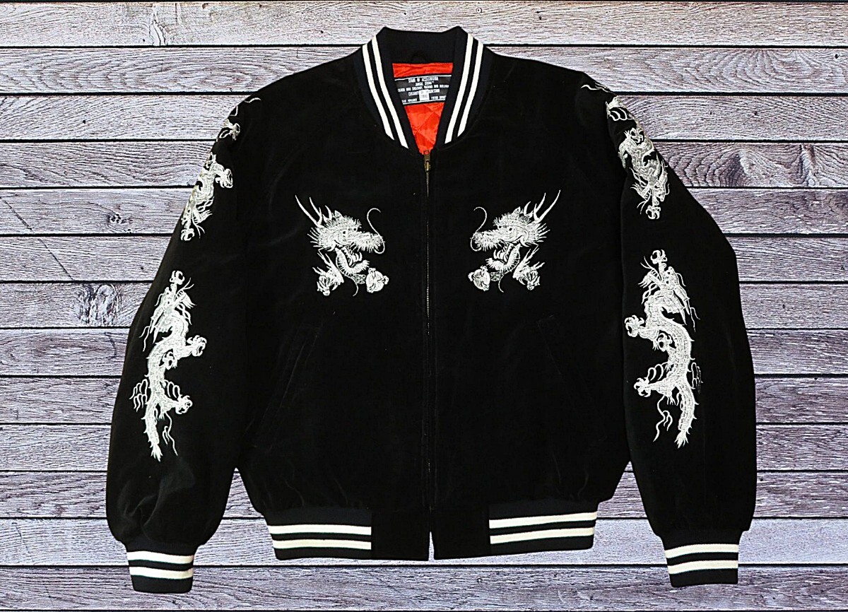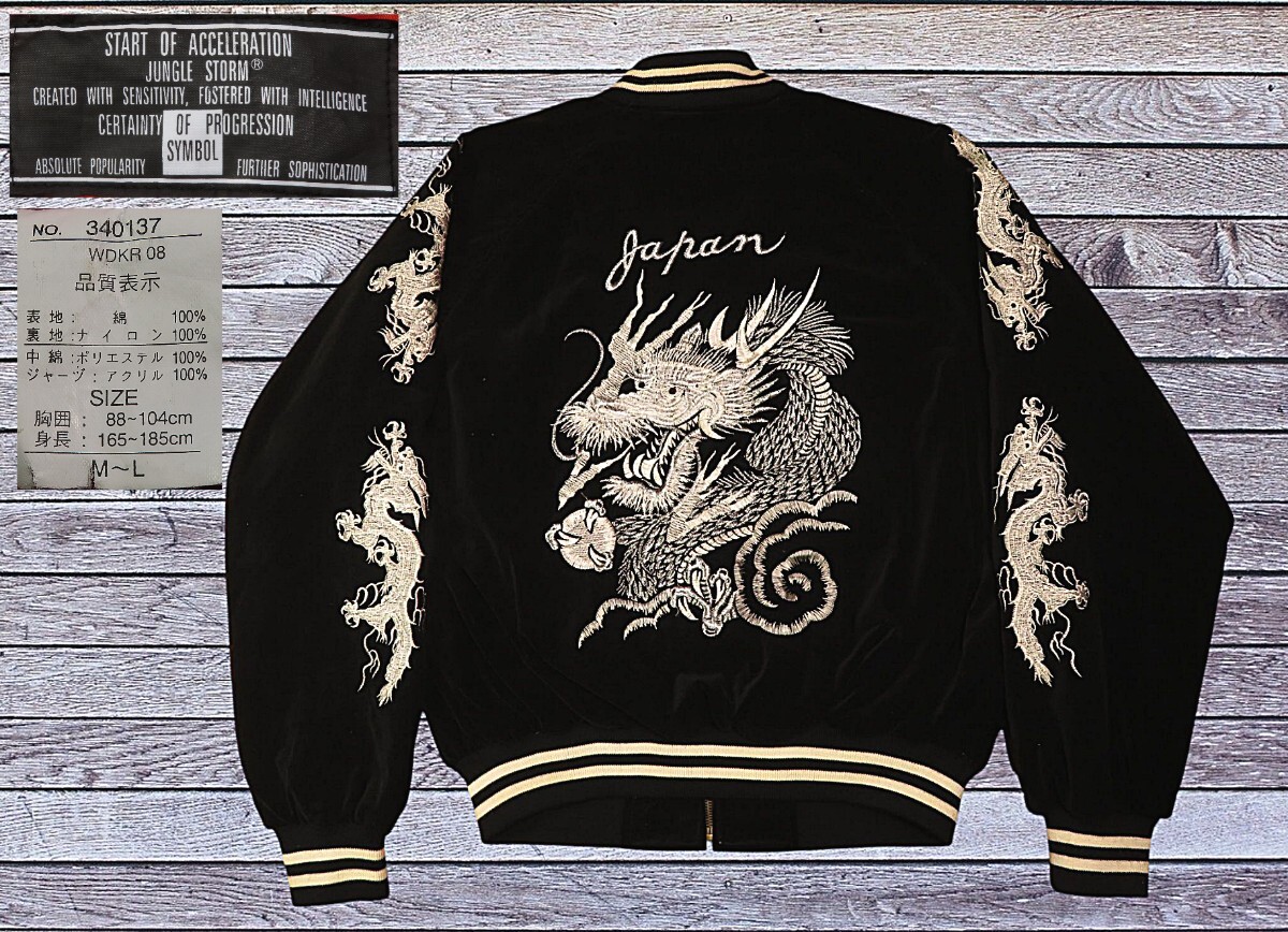 シルバードラゴン★M~L【JUNGLE STORM/ジャングルストーム】旧モデル/90s頃/スカジャン/別珍/スーベニアジャケット/龍/銀龍/ドラゴン/黒★