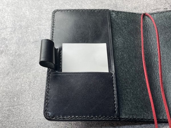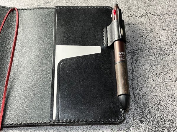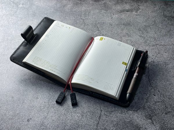 2つのペン差しに1本のペンを通すワンアクションで手帳を開かなくする事が出来ます。