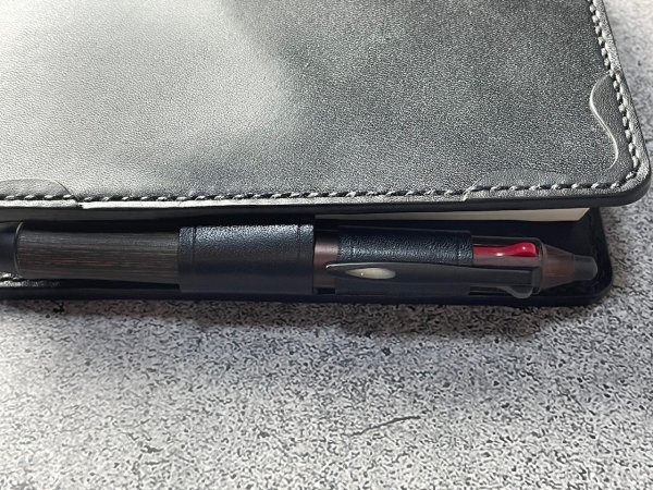 □ペンを差し込むとカバーを閉じることがワンアクションで出来ます。