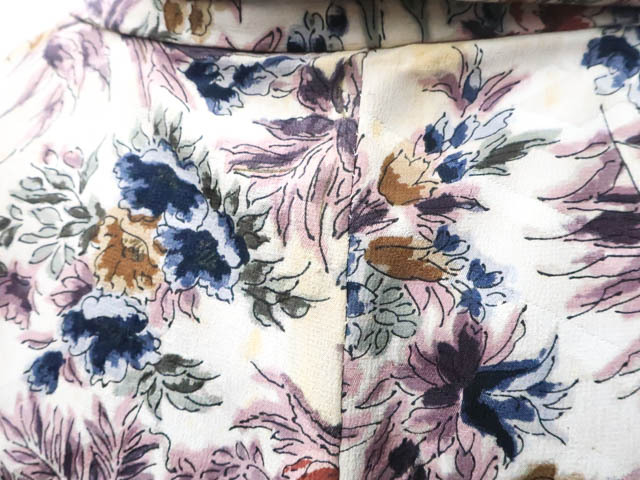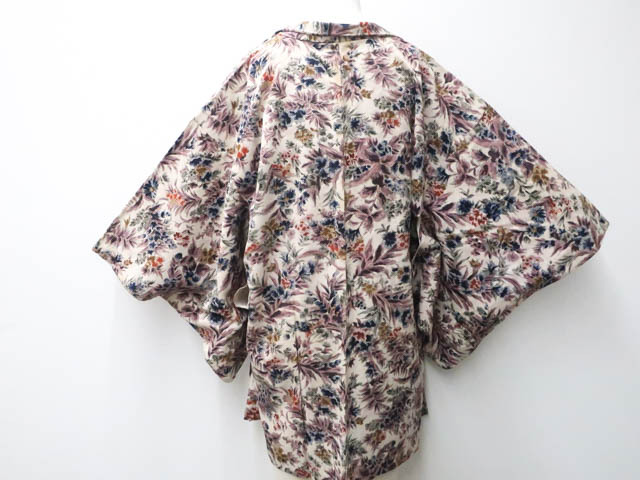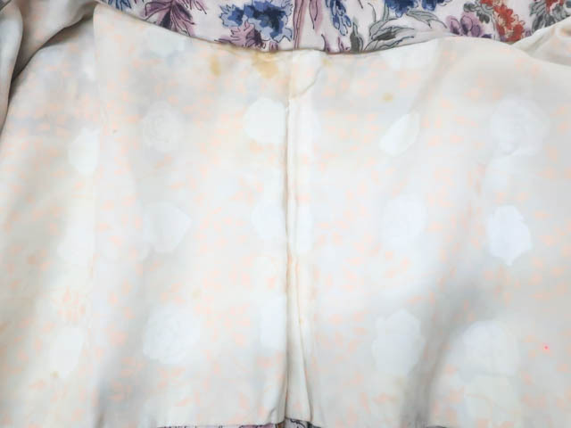 リサイクル商品のため全体所々にしみ、汚れがございますが着用可能なお品です。 地色は アイボリー。 1枚目の画像が近いお色かと思われます。 素材は正絹です。 |