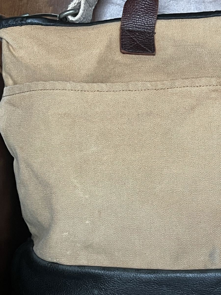 両側面には、ポケット付。中は、あえて仕切りを作らずに使い勝手の良いつくりになってます。