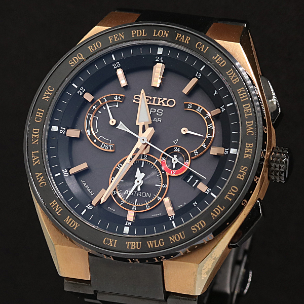 1円 箱付 稼働 良品 セイコー アストロン 8X53-0AV0-2 ソーラー ブラック文字盤 メンズ腕時計 0004400 ONS