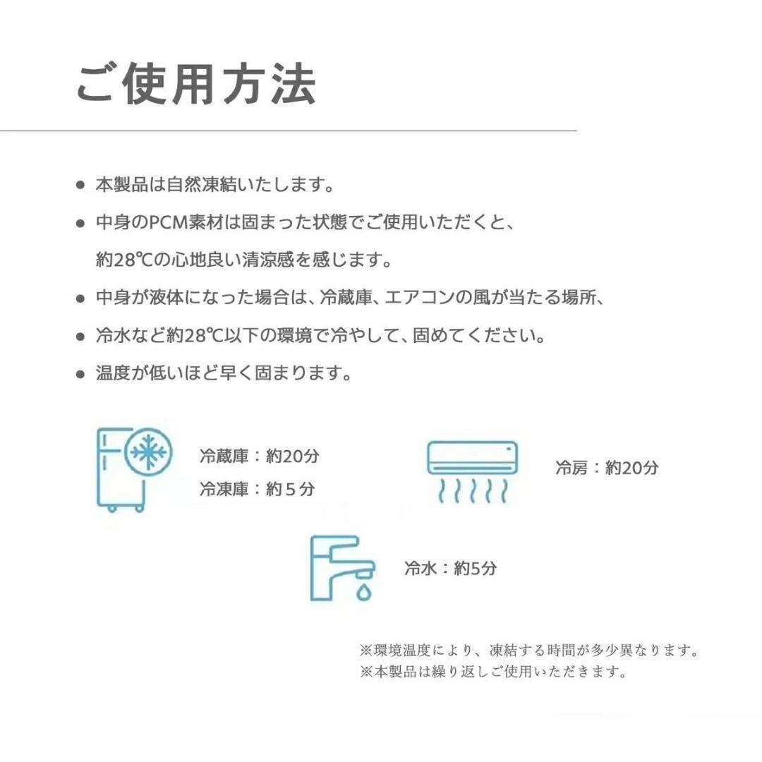 28℃以下で自然に凍結し、手軽に暑さ対策ができるので、屋外屋内どこでも繰り返しお使いいただけるアイテムです。