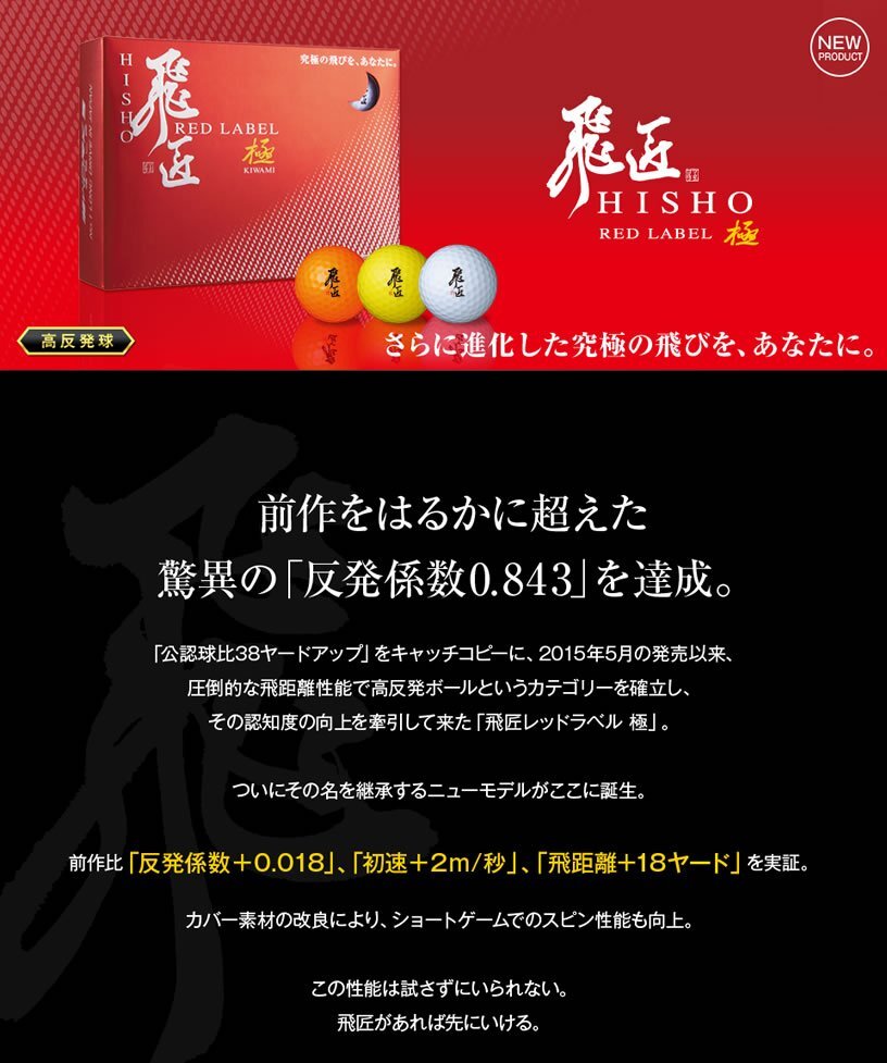 -飛匠 RED LABEL 極 高反発ゴルフボール 12球入-
