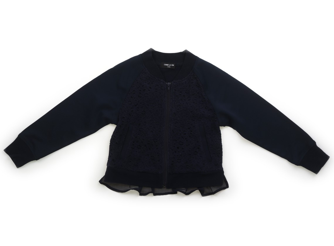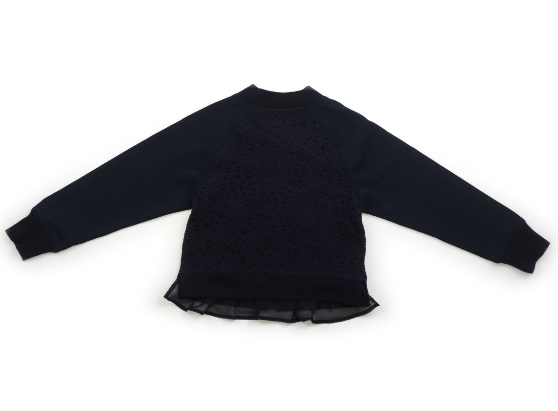 ポリエステル、綿のジャージー素材の袖と身頃はレース生地の組み合わせです。前ファスナー開き。後ろ裾にシフォン生地フリルがあります。リブに若干毛玉がありますが、目立つ汚れはありません。