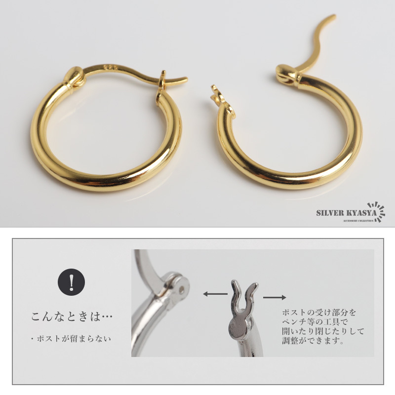 外径24mmタイプ:幅約2mm、外径約24mm、ピアスポスト約1mm(18G)、ポストの長さ約6.5mm、重量約1.5g(1つ当たり)