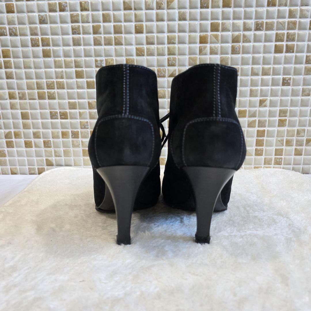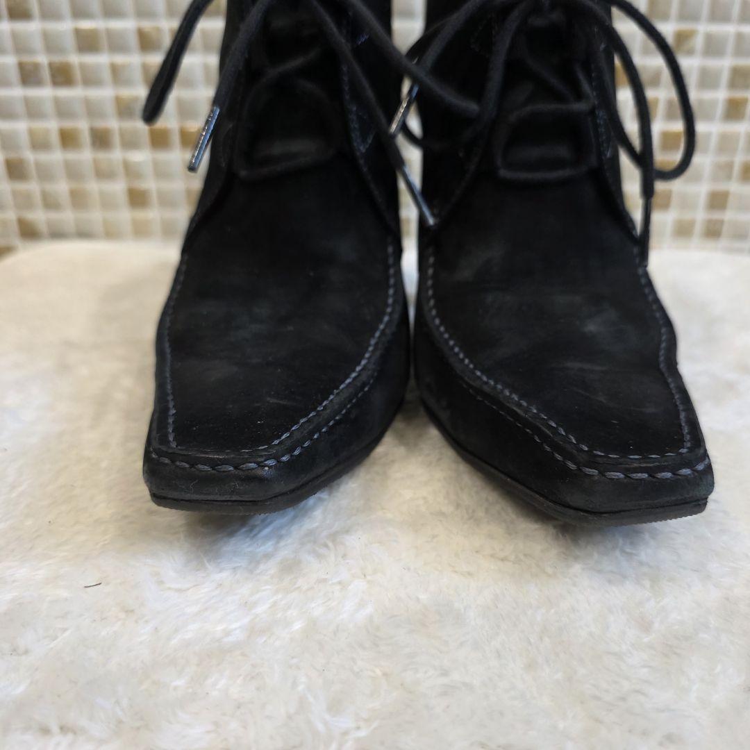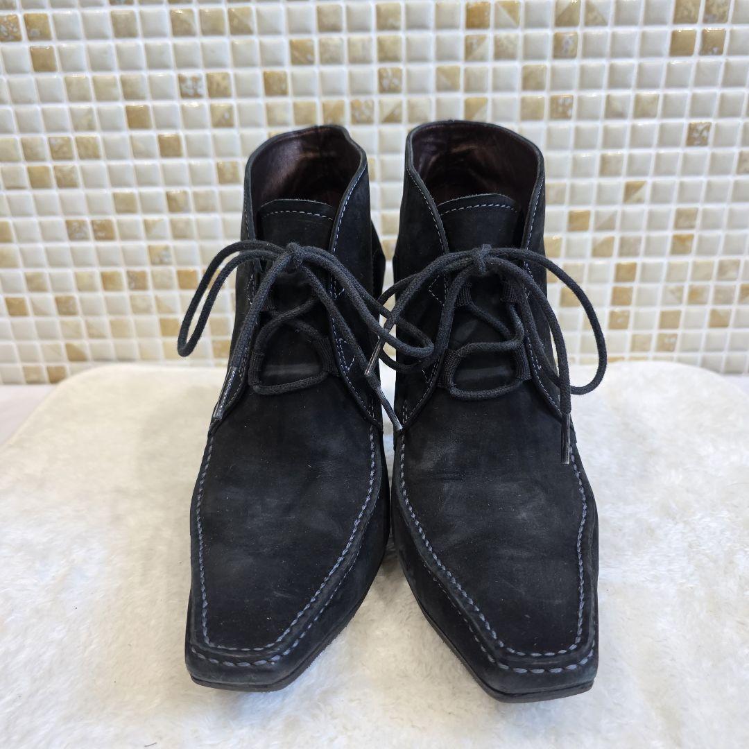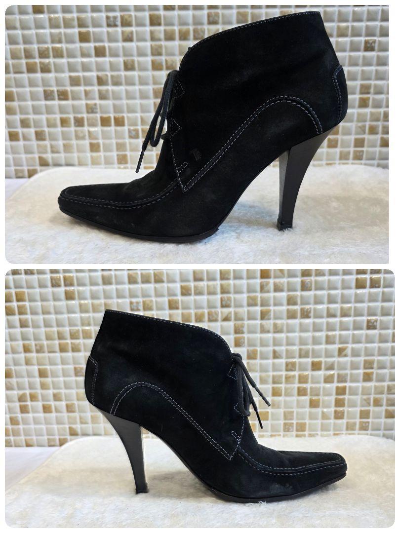 【状態】アッパーにやや使用感、インソールに履きシワや擦れあり。ヒールにキズありですが、上質なスエードの風合いがしっかり残っており、雰囲気ある一足です。