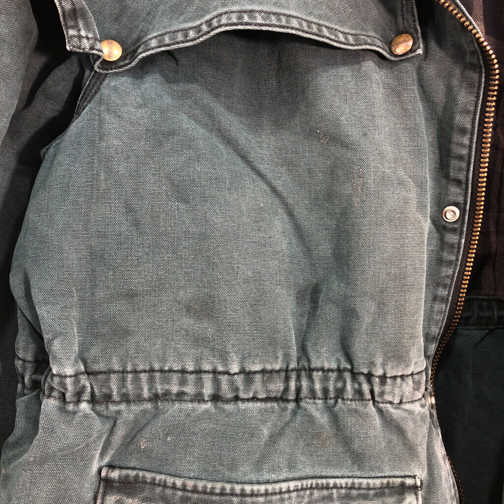 | 【商品管理番号】 R8438 【ブランド】 Carhartt/カーハート 【サイズ】 XX-LARGE 【実寸サイズ】 肩幅:約60cm 着丈:約83cm 身幅:約66cm 袖丈:約64cm 【主な素材】 表地 : コットン 裏地 : 13791 【色】 グリーン 【仕様】 生産国 : USA製 80年代 大きいサイズ アンブレラケープジャケット 【状態】 汚れ:首元、袖先、背中 特記事項:色褪せ | |||