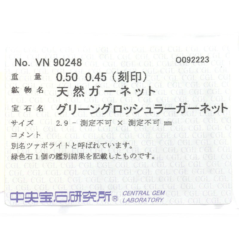 素材:PT900(プラチナ)・グリーングロッシュラーガーネット0.50ct・ダイヤモンド0.45ct