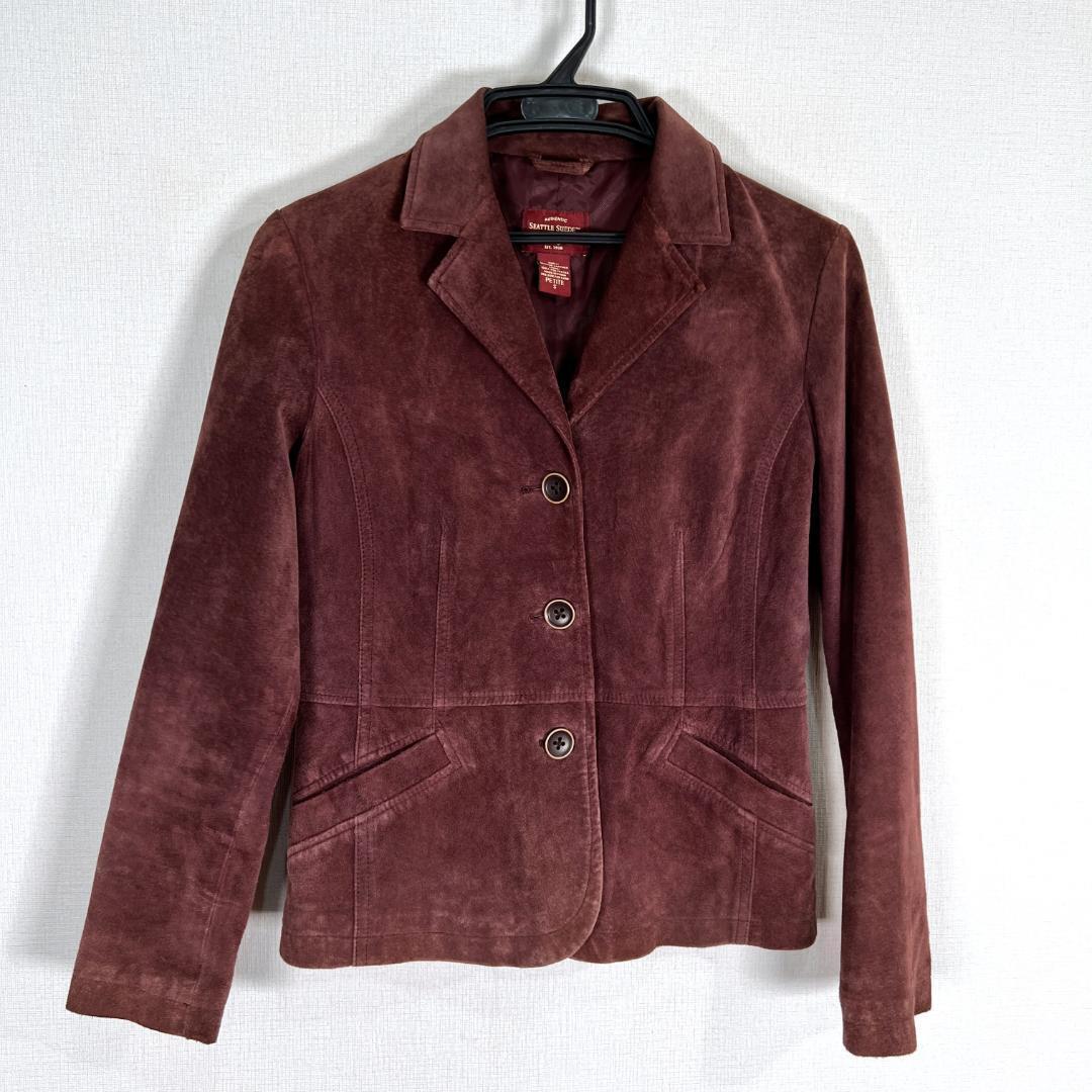 女性用 レディースのブラウン系の本革ジャケット 革ジャン テーラードジャケット レザージャケット スエードジャケットです。中古品ですが目立つ傷や汚れもなく、まだまだ使えます。古着 エディーバウアー エディー・バウアー・ジャパン(株)
