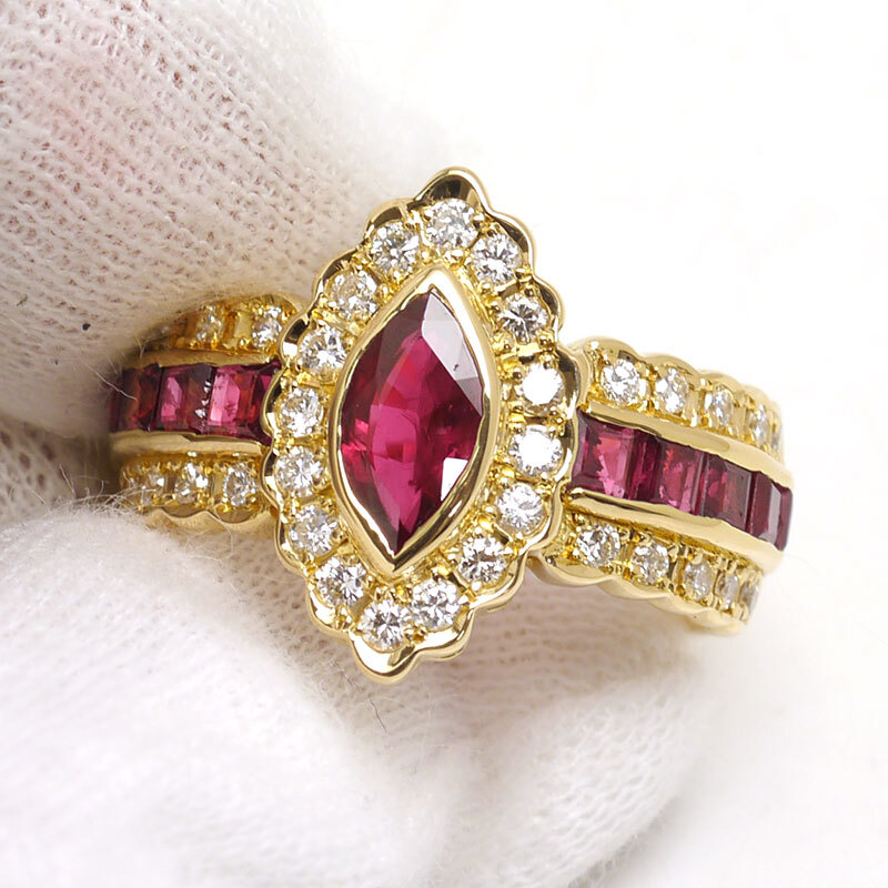 素材:K18YG・ルビー(カラット刻印なし)・ダイヤモンド0.48ct