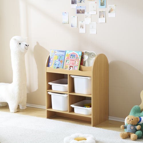 【お片付けが身に付く知育家具】おもちゃを入れるだけでお片付け完了。絵本も立ててしまえてスッキリ。