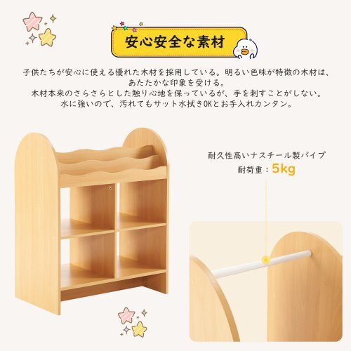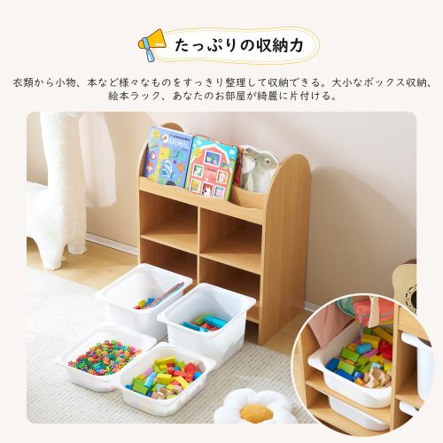 おもちゃ収納ラック 子ども用家具 木製 収納ケース ワイドタイプ 大容量 組立カンタン 絵本棚 絵本ラック こども コンパクト