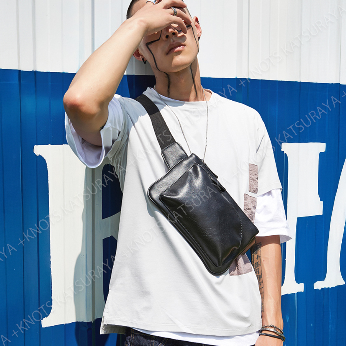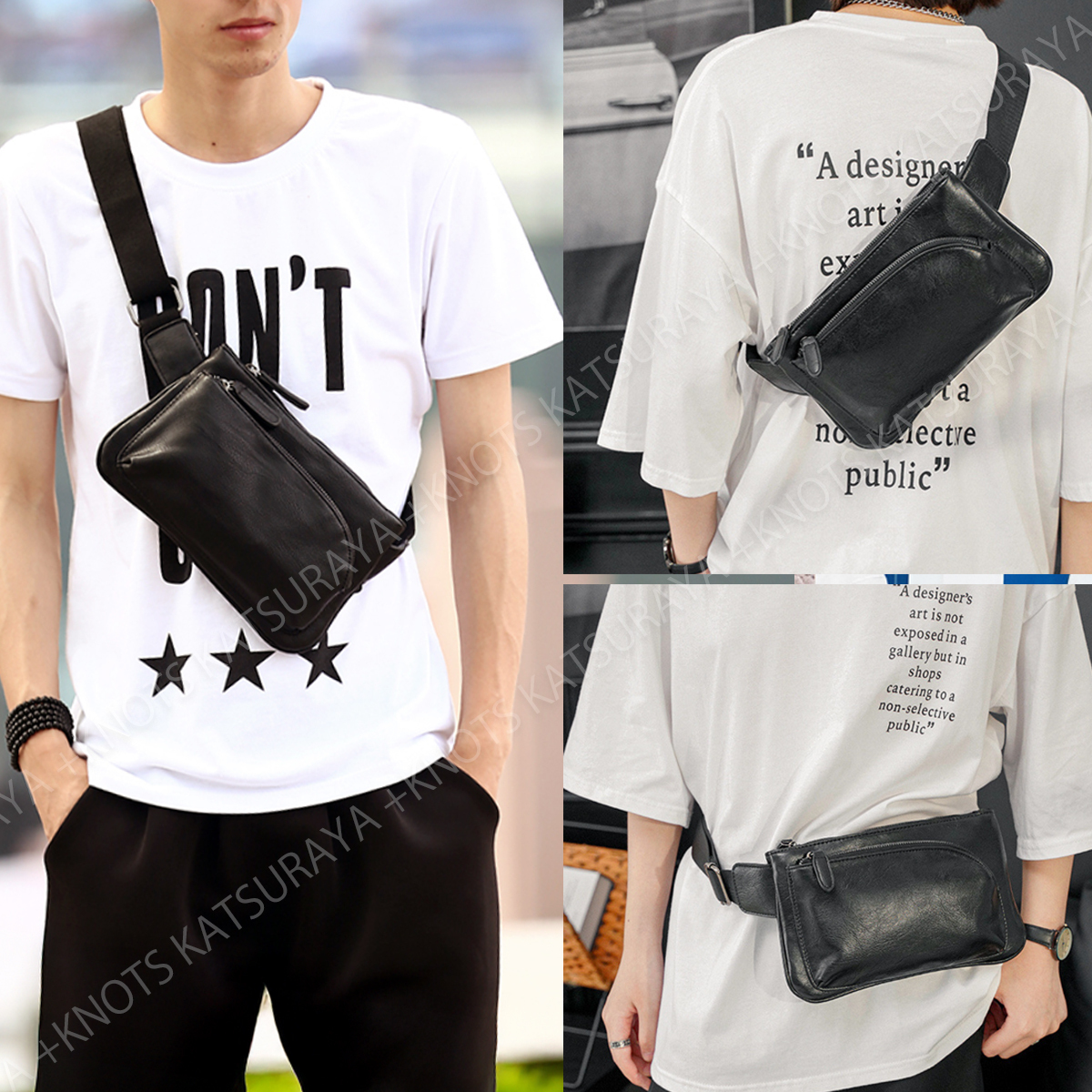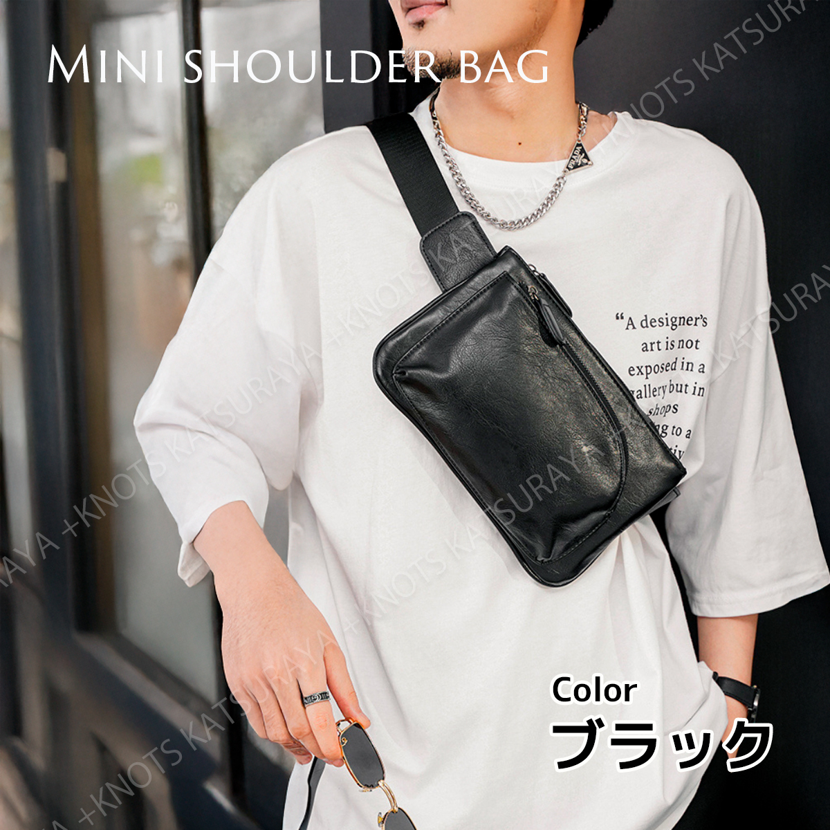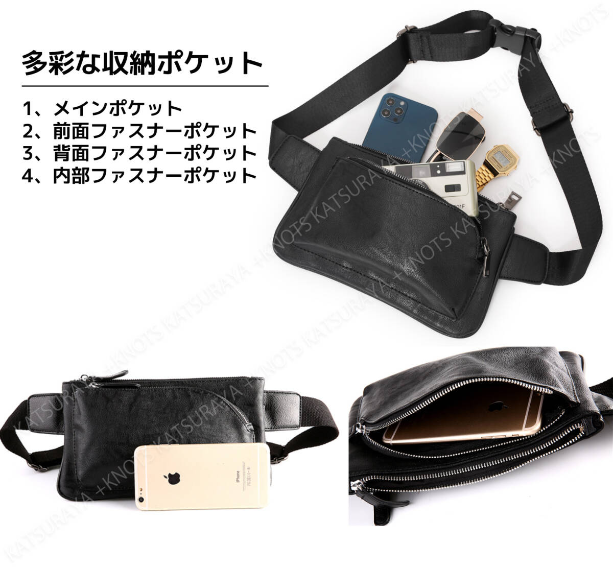 ミニ ショルダーバッグ メンズ★ブラック黒★小さい 斜めがけ スマホポーチ ボディバック ボディー レザー ウエストバッグa446