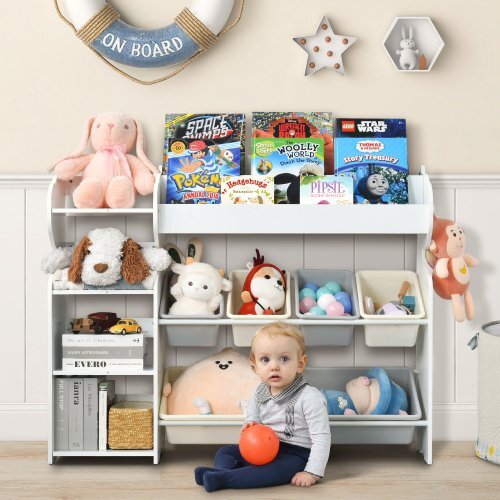 絵本ラック 絵本棚 大容量 本棚 収納ラック 多機能 おもちゃ収納 収納ボックス 子供部屋 収納ケース 子ども用 家具 木製 キッズ