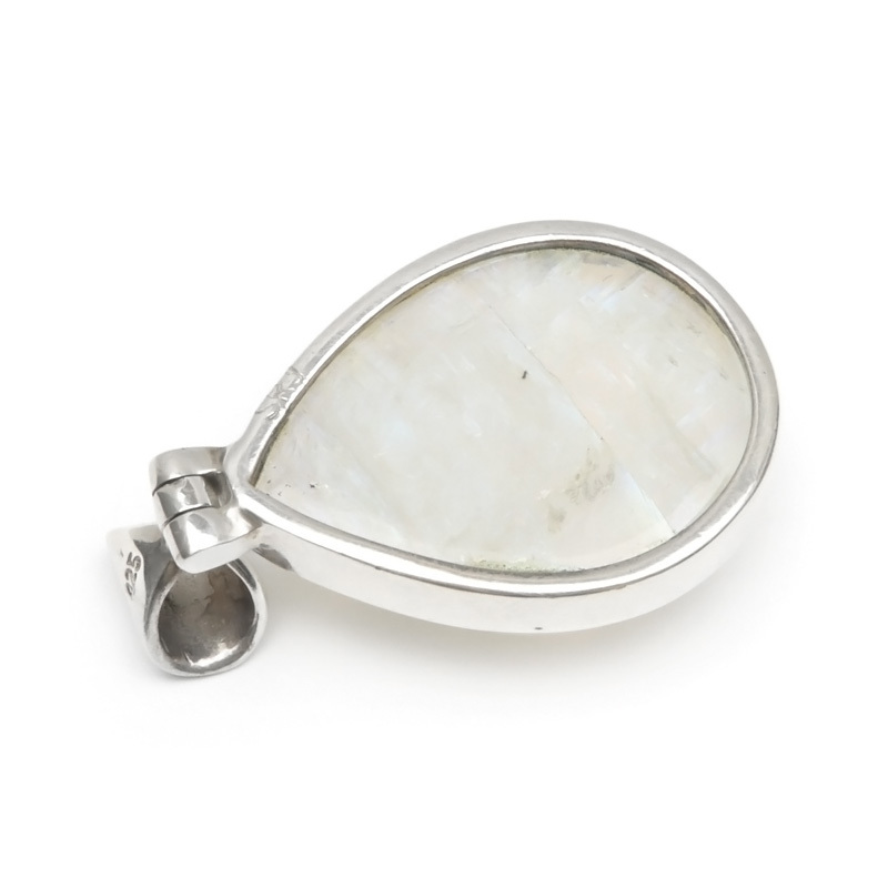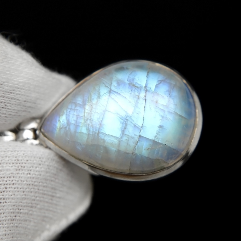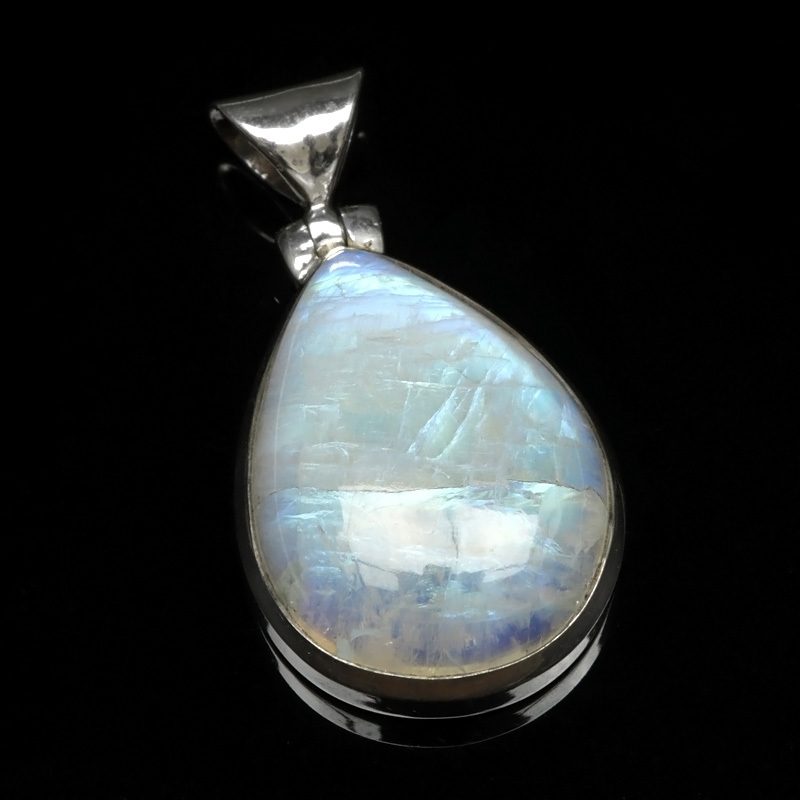 七色の輝きが神秘的な印象を与えるレインボームーンストーン(ホワイトラブラドライト)のペンダントトップです。