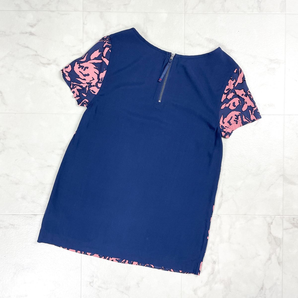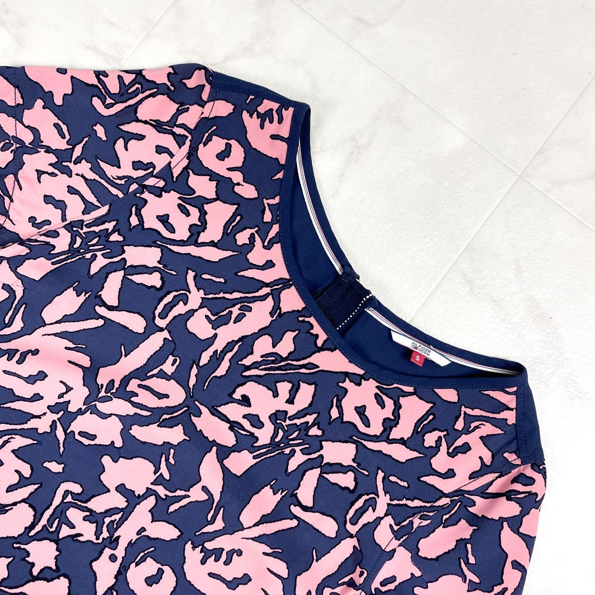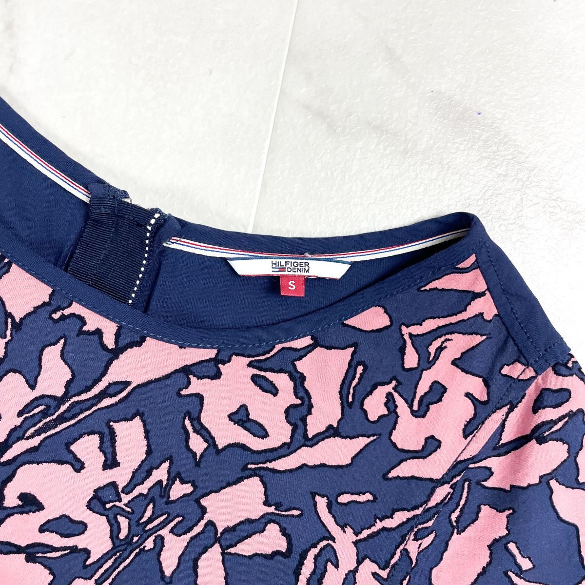 美品 HILFIGER DENIM ヒルフィガーデニム 総柄ブラウス 半袖 トップス レディース ピンク ネイビー 紺 サイズS*GD1183