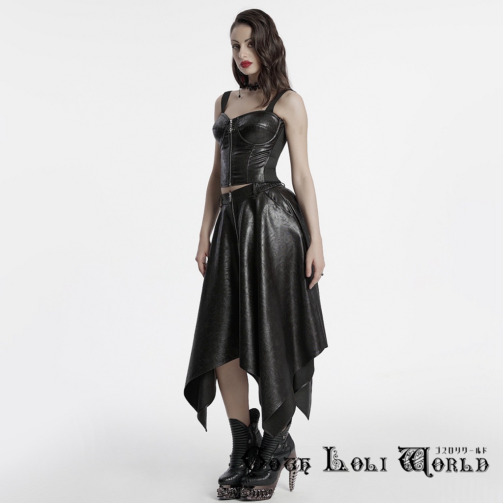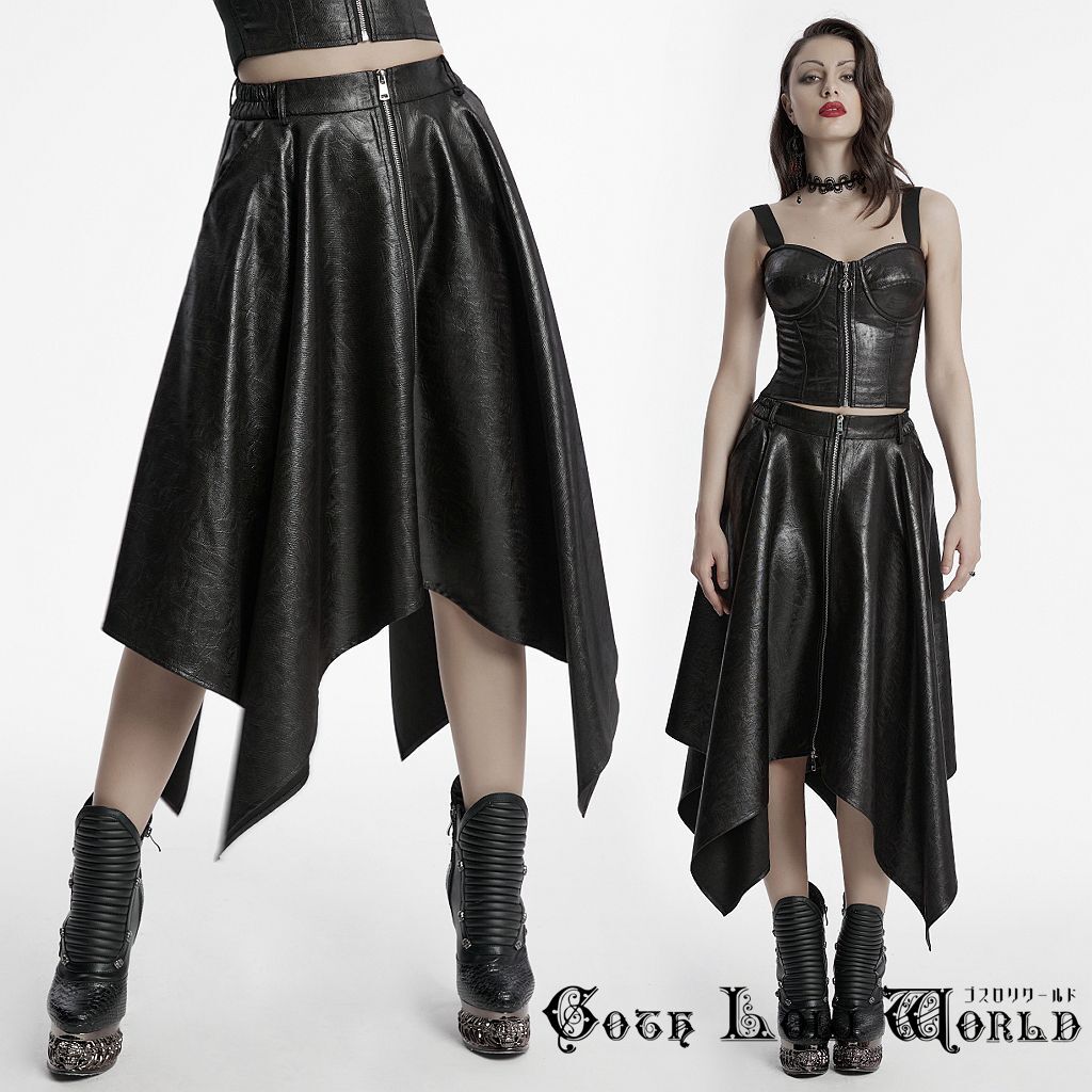 OQ-785DQF-BK-M ゴシックファッション フェイクレザー スカート ゴシック パンク ロック ビジュアル系 ヴィジュアル系 ゴスロリワールド