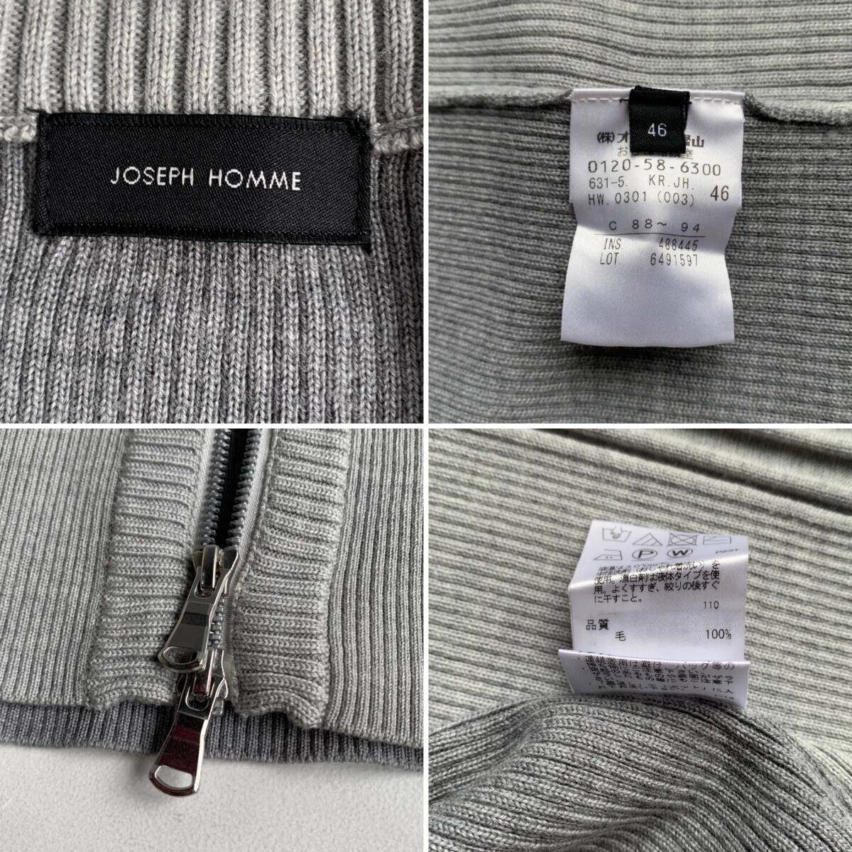 ☆JOSEPH HOMME ジョセフオム ジップアップニットカーディガン ドライバーズニットセーター グレー サイズ46【レターパックプラス郵送可】I