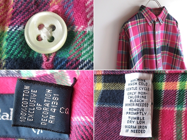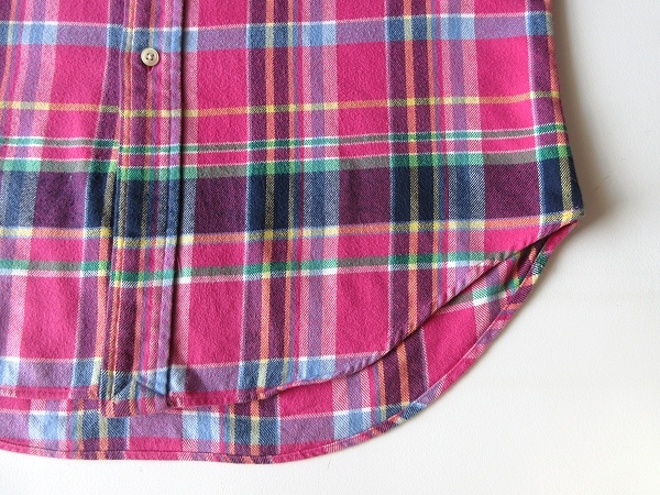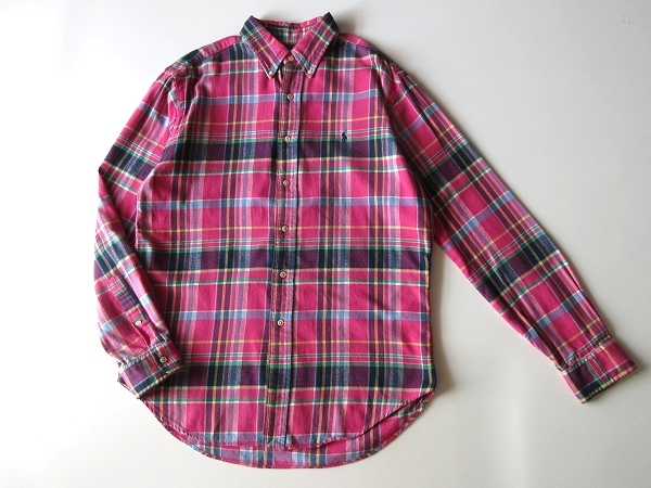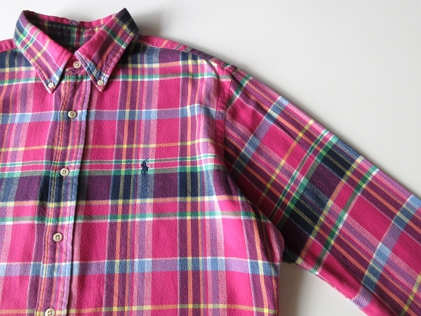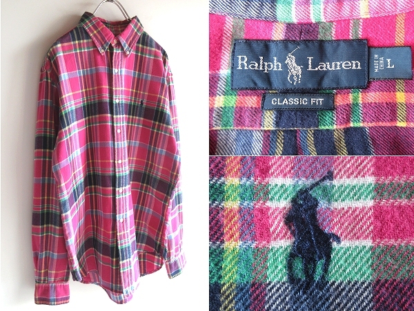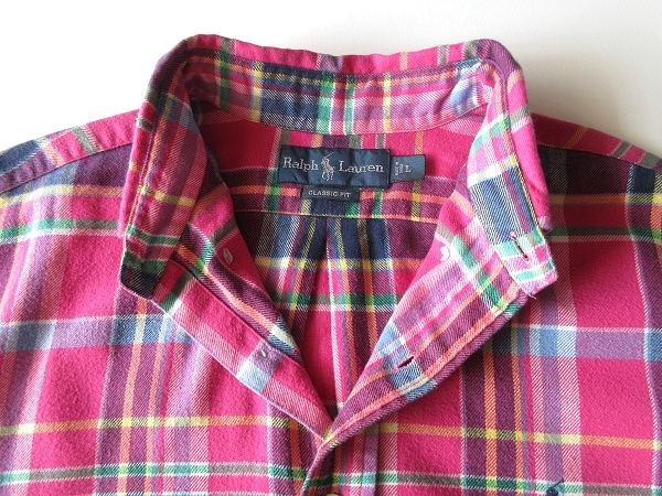 希少 00sビンテージ Ralph Lauren ラルフローレン CLASSIC FIT ポロポニーロゴ刺繍 チェックシャツ ネルシャツ L フューシャピンク USA企画