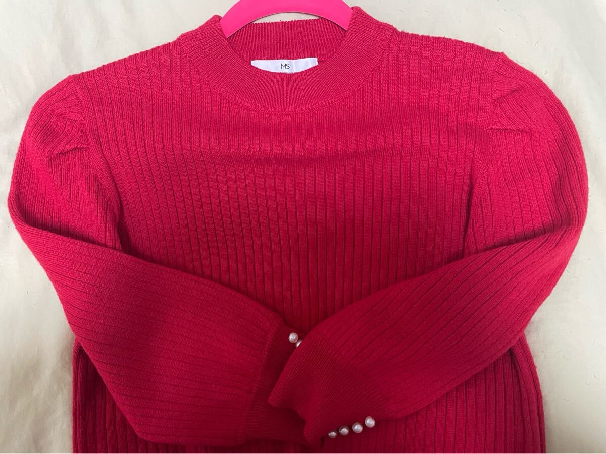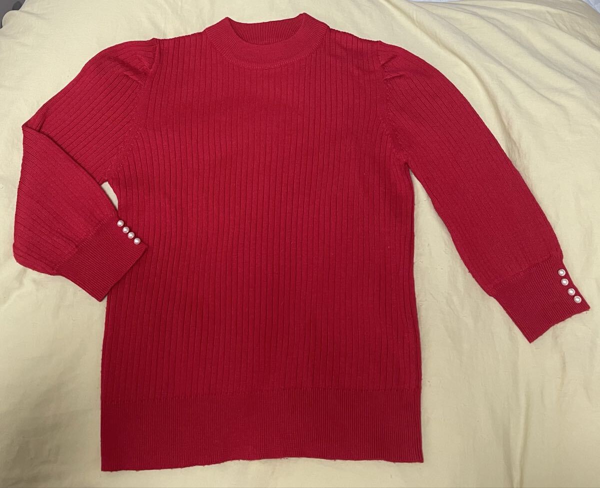 袖は肘が隠れるほどの長さで、パールの飾りが可愛らしいです(^^)