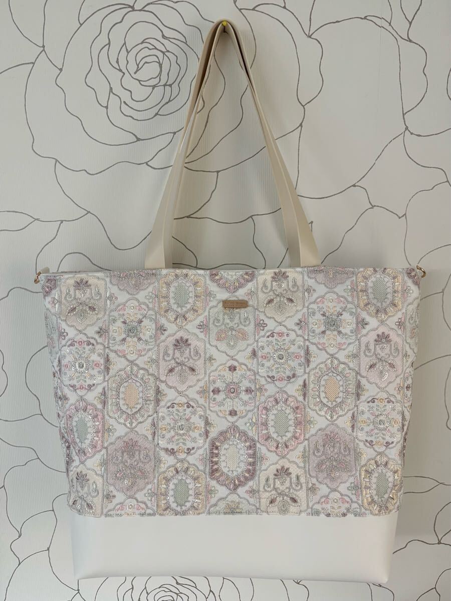 オール刺繍のインド刺繍生地と合皮を合わせて高級感のあるバッグにお仕立てしています(о´∀`о)