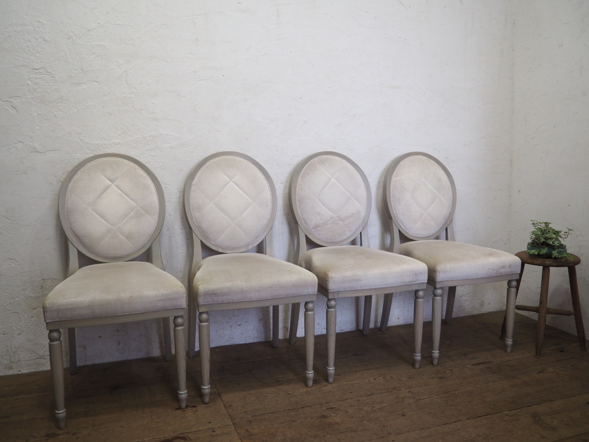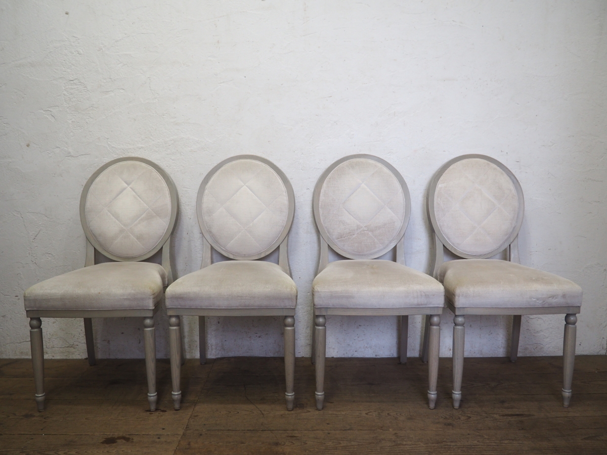 ヨーロピアンスタイルの素敵な古い木製チェア、4脚セットです。