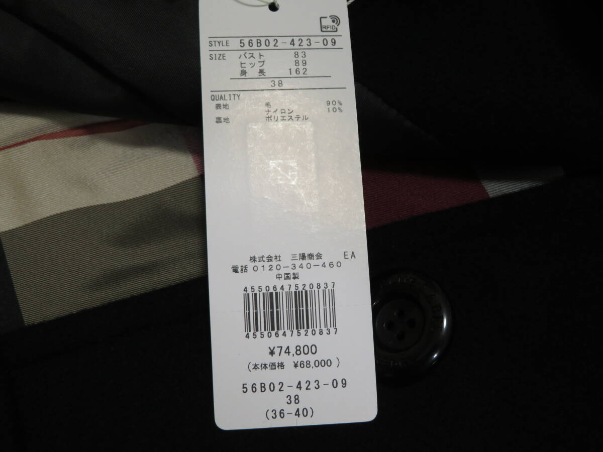 ブルーレーベルクレストブリッジ  ウールのハーフコート 38/M 黒 74,800円