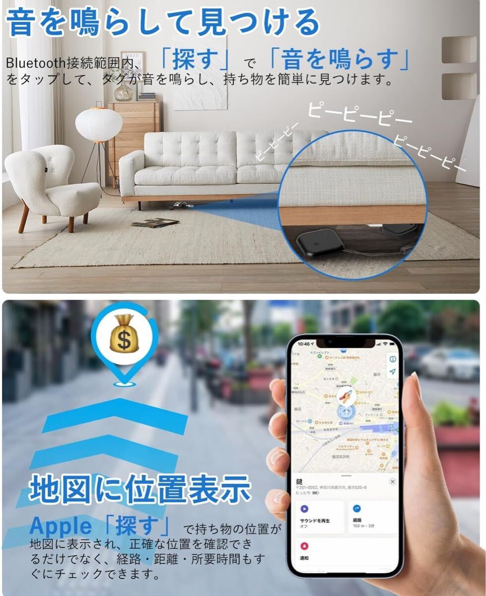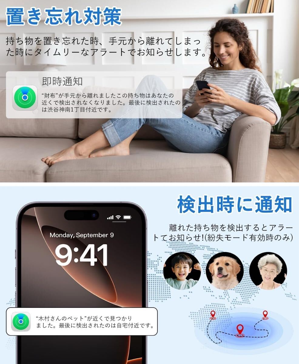 【安心のMFi認証品&Findmayラベル、GPSで全世界追跡】 GPSタグはアプリのダウンロードは不要!IOS MFI認証とFindmayラベル搭載で、iPhone製品と完全互換。「探す」公式アプリ対応、iPhone製品と完全互換。接続が安定し、全世界GPSで遅延なしの高精度位置測定が可能です!世界中どこにいても、GPSと強力な信号で簡単に物の位置を特定できます!超長距離追跡、これは日本だけでなく、世界200以上の国と地域にも対応しており、地域制限なしで、海外出張や旅行でも使えます。Giteki無線認証(認証コード:2210-233144)を取得済み。合法的な周波数帯と信号基準に準拠しており、干渉や法的リスクを回避。接続が途切れることなく、安定した追跡が可能。家でも外でも、いつでもあんしんです!