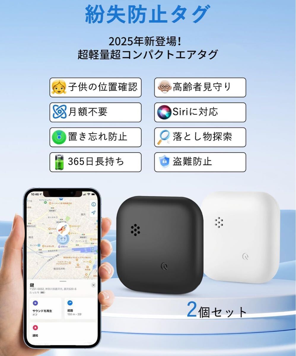 【2025新登場・業界最小・超軽量・airtag】スマートタグの開発において長年の経験を誇り、従来の方形の紛失防止タグの厚さや大きさ、重さといった欠点を解決して最新の技術を駆使した方形のエアタグを提供しています。従来の3.6CM以上の大きさのものとは異なり、めっちゃ薄くなった!サイズも小さくて、直径わずか2.9CM。軽すぎて存在忘れそう!重さはたったの6.9g。財布やカギなどの小物にも簡単に取り付けられるため、浮気調査や重要な持ち物の管理にも最適です。