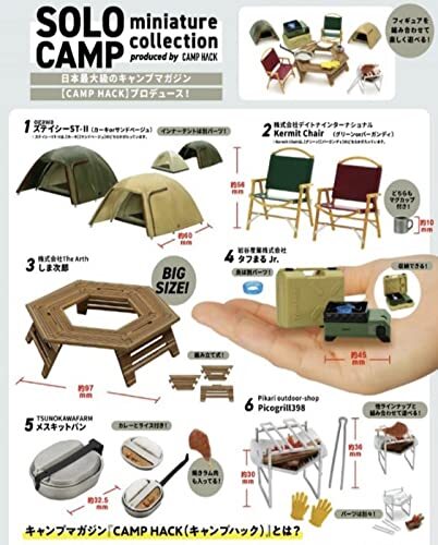 日本最大級のキャンプマガジン「CAMP HACK」プロデュース!ソロキャンプ ミニチュアコレクション produced by CAMP HACK 全6種セット ケンエレファントステイシーST-2(カーキ or サンドベージュのランダム)Kermit Chair(グリーン or バーガンディのランダム)しま次郎タフまるJr.メスキットパンPicogrill398