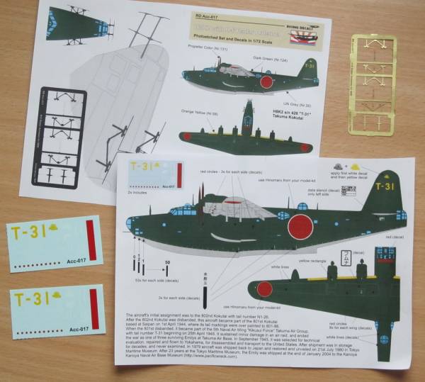 二式飛行艇用のH-6レーダーアンテナ(空6号無線機)と詫間海軍航空隊のマーキングデカールのセットです。真鍮エッチング製。1/72スケール用。新品です。Acc-017 | ||
