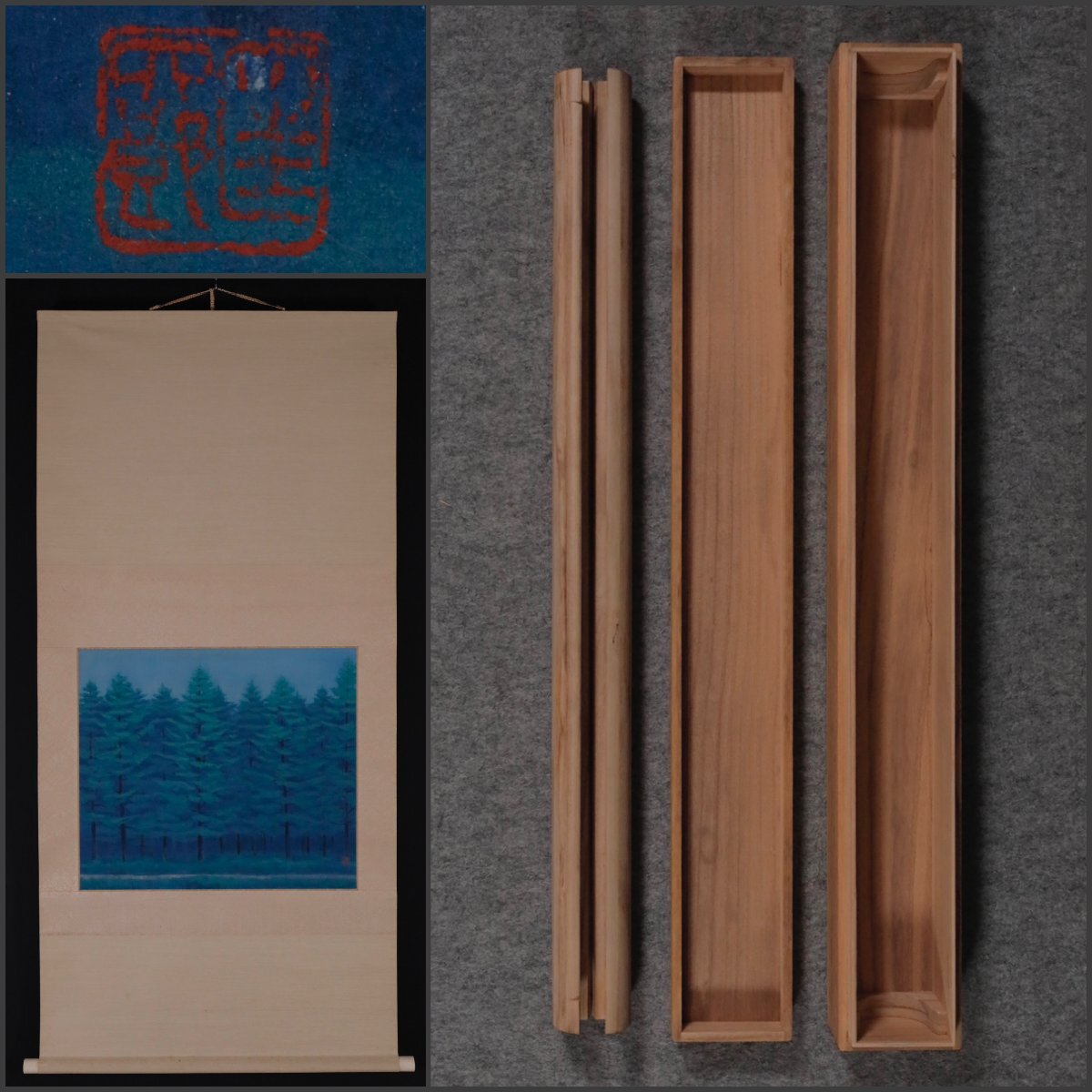 【模写】吉】12868 太巻付き 無地 空箱 内寸72.2×7cm 表具 表装 桐箱 時代箱 書画 中国画 茶掛け 茶道具 まとめて 保存 保管 掛軸 掛け軸