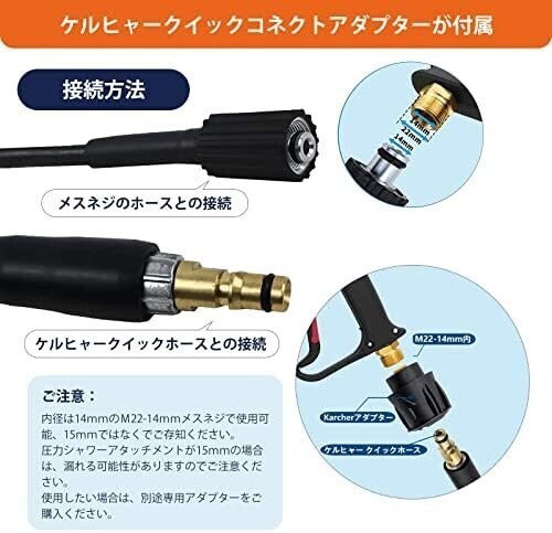 狭い所にもお役に立ちます!(Generac、Simpson、Briggs Stratton、Craftsman、Karcher、Ryobi圧力洗浄機などのM22-14mmホースを備えた圧力洗浄機と互換性があります) 【多機種に適性があります】Akitsuba高圧洗浄ショートガンは便利なケルヒャー(Karcher)クイックコネクトアダプターが付属しています。