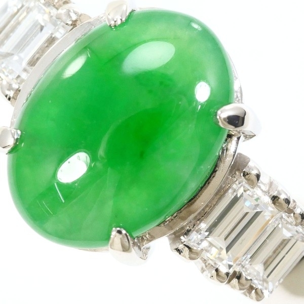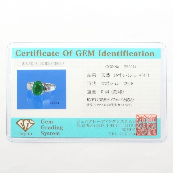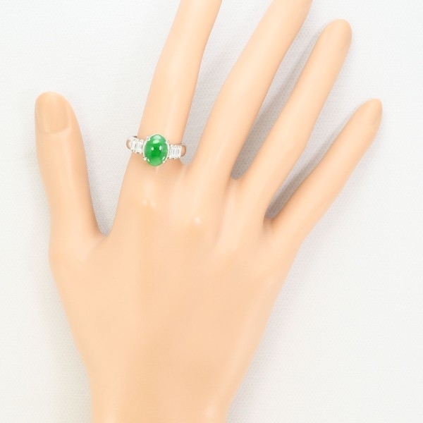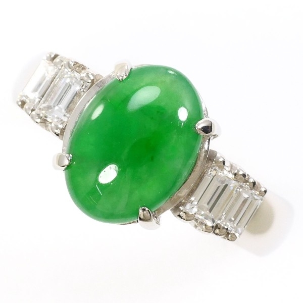 PT900 リング 指輪 11.5号 ヒスイ ダイヤ 0.44 カード鑑別書 総重量約9.1g 中古 美品 送料無料 | |