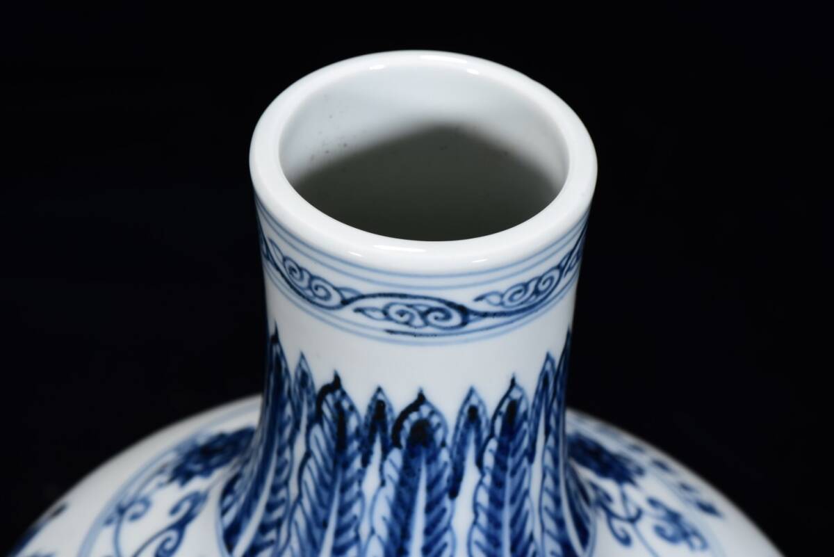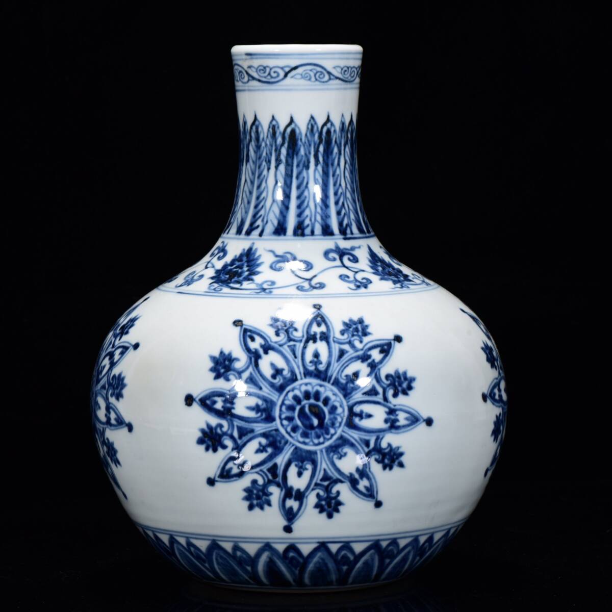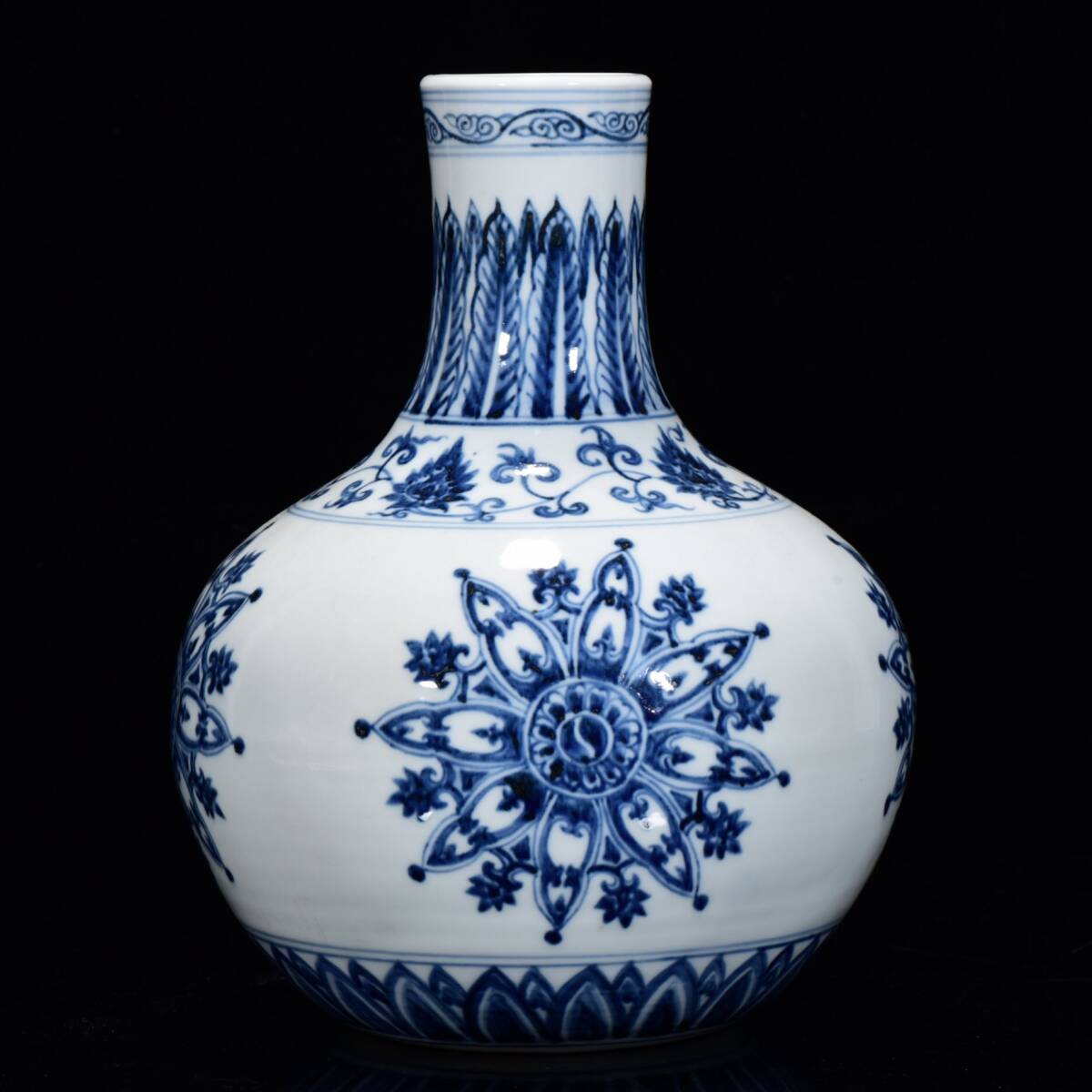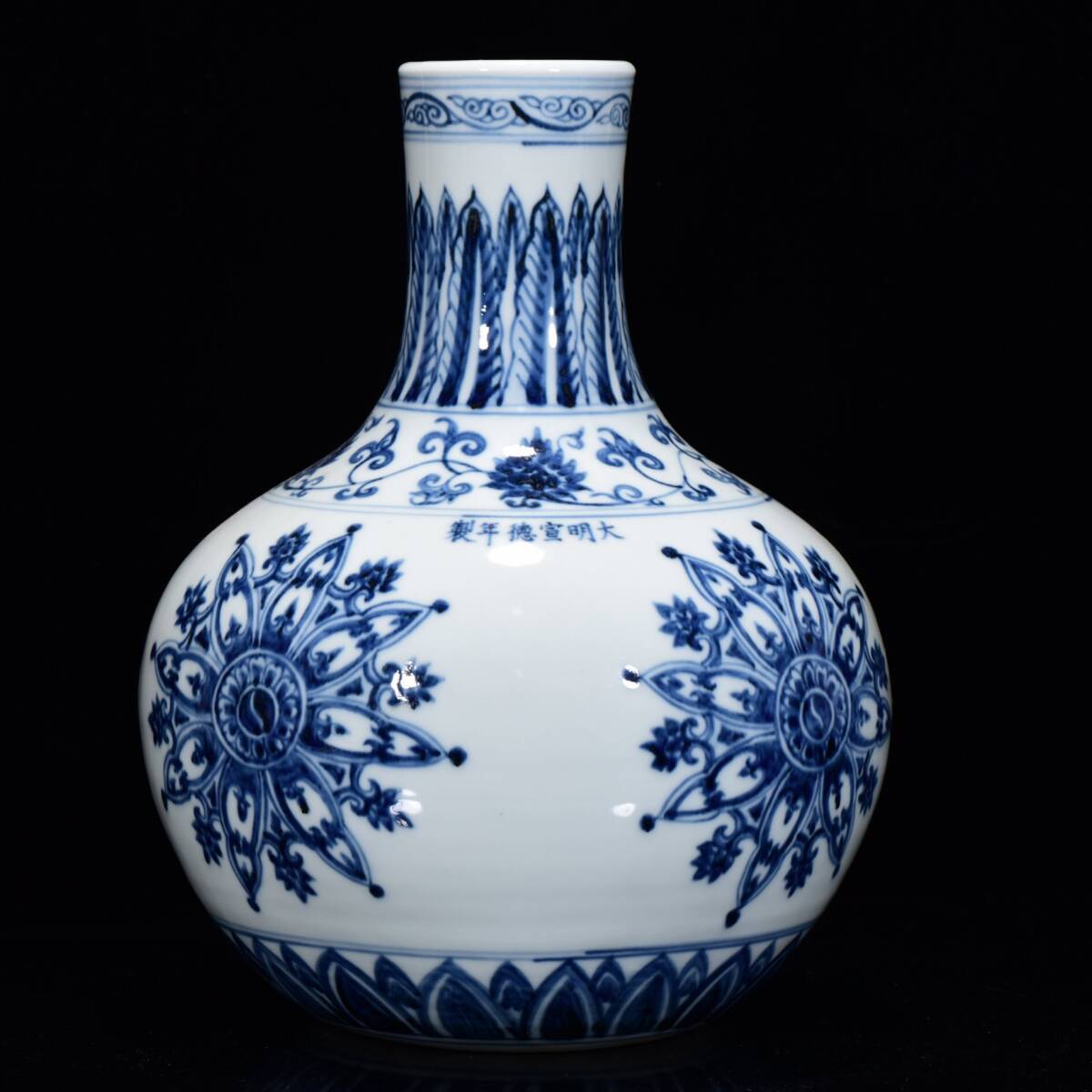 【超珍館蔵】明 宣德年製款 古陶瓷品 青花 輪花紋 天球瓶 陶藝 古賞物 古董品 古美術品 時代物 旧家蔵出 稀少珍蔵品