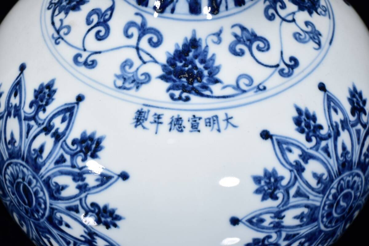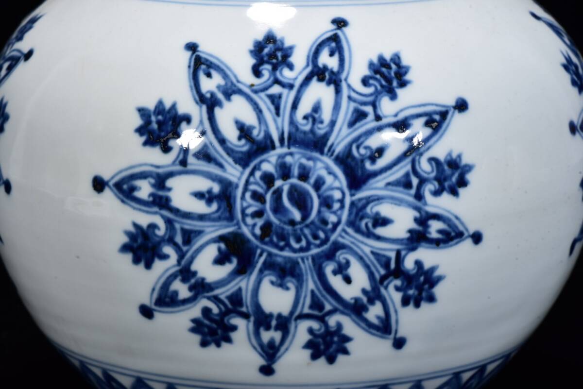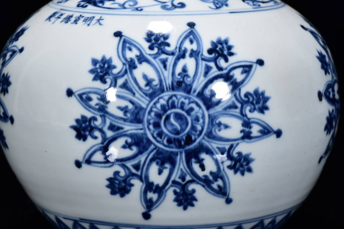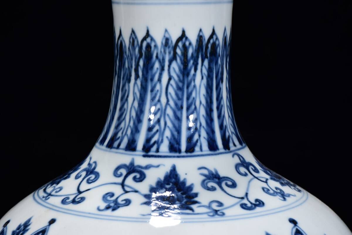 【超珍館蔵】明 宣德年製款 古陶瓷品 青花 輪花紋 天球瓶 陶藝 古賞物 古董品 古美術品 時代物 旧家蔵出 稀少珍蔵品