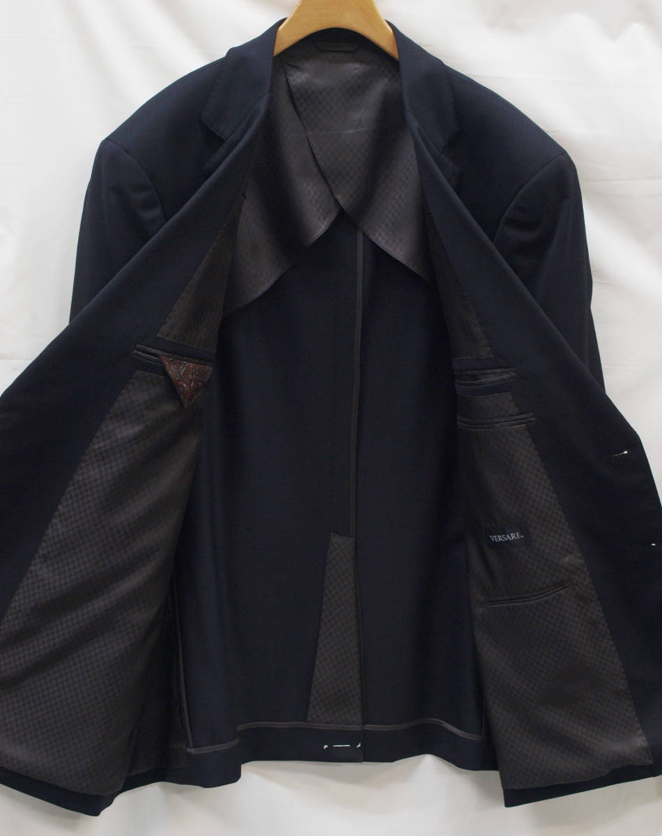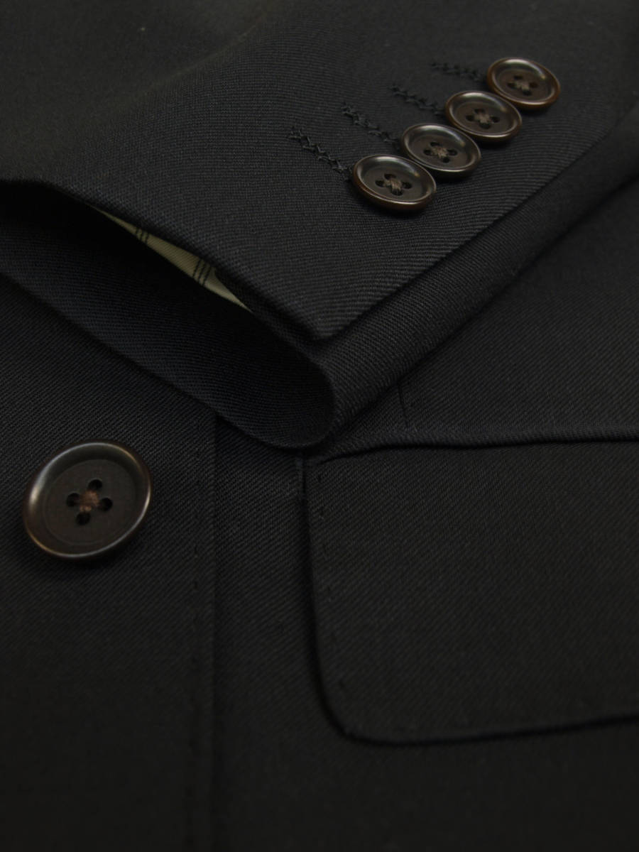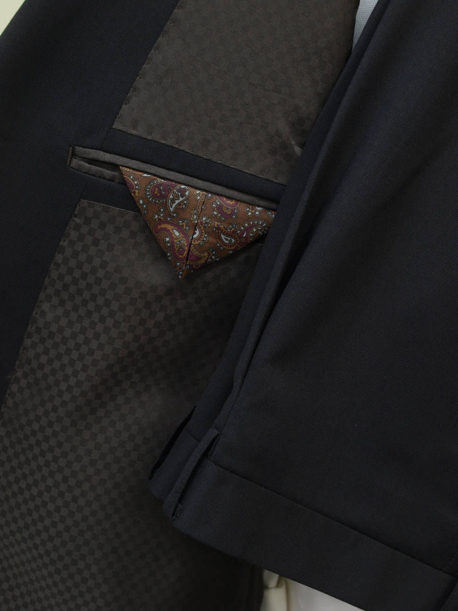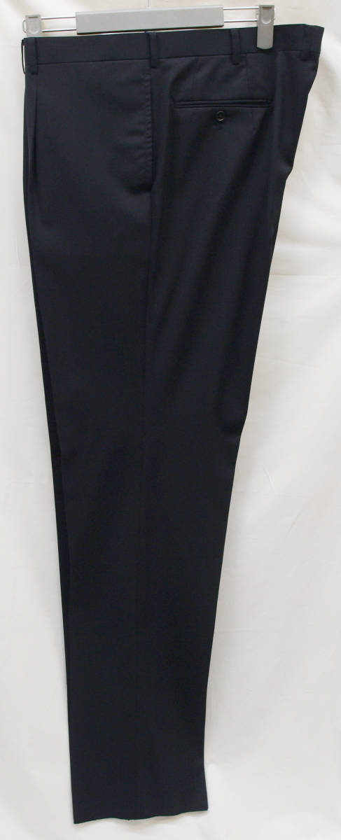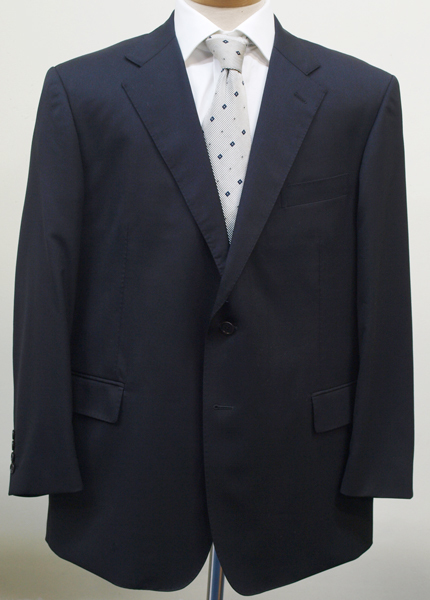【サイズ】 K5(大きいサイズ/ビッグサイズ) 目安の体型 身長165cm~175cm、ウエストサイズ107cm前後 【ジャケット実寸】 肩幅50.5cm 着丈73cm 袖丈60cm 脇下部分61cm 身幅60cm 【パンツ実寸】 ウエスト(胴回り実寸)107cm わたり幅37.5cm(股下10cmの部位で34cm) 裾幅23.5cm 脇股上31cm 前股上33cm 股下90cm(裾上げしていない状態/新品) 【素材】 表地:ウール50% ポリエステル50% 裏地:胴裏/ポリエステル100% 袖裏/キュプラ100% 夏向けほど透け感がなく厚みがあり、冬向けと比べるとやや薄手の適度な厚みのオールシーズン向け紳士スーツ用のウールブレンド素材を使用 【色】 黒色 【柄】 無地 【デザイン】 ほどよいゆとりのある着心地のシングル2つボタンスーツ、レギュラーフィット、ビジネススーツ新品、裾上げしていない状態です。 ・ジャケットはシングル2つボタンでややゆとりがある着用感のベーシックレギュラーモデル ・パンツは股上は浅くなく普通で、適度なゆとりをもたせたレギュラーフィット、1タックパンツ ご着用の地域にもよりますが真夏を除くほぼオールシーズン対応商品 【縫製仕様】 ・ジャケットはシングル2つボタン、ノッチドラペル、襟縁等AMFステッチ入り、袖口ボタン4つ、センターベント、内ポケット4つ(小ポケット2つ含む)、背抜き(秋冬春物) ・パンツはワンタック、膝裏当て付き、脇ポケット縦付け、後ろポケット両玉縁で左のみボタン付き、フロントはファスナーでボタン&ホック仕様/うちかけボタンあり、シロセット加工(パンツ折り目加工) 細部にわたりきちんとしたビジネス仕様の縫製仕立てで仕上がっております。
